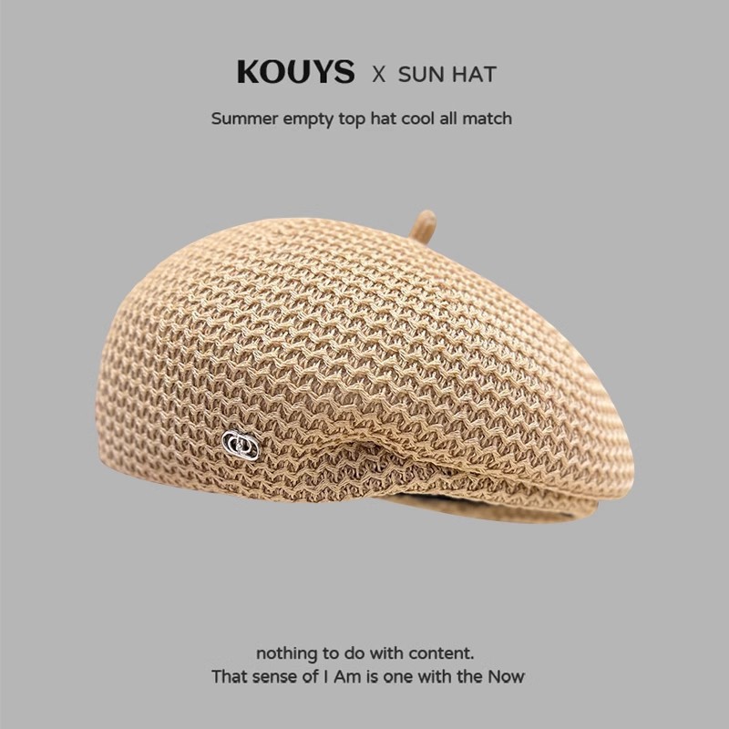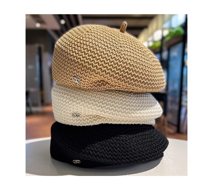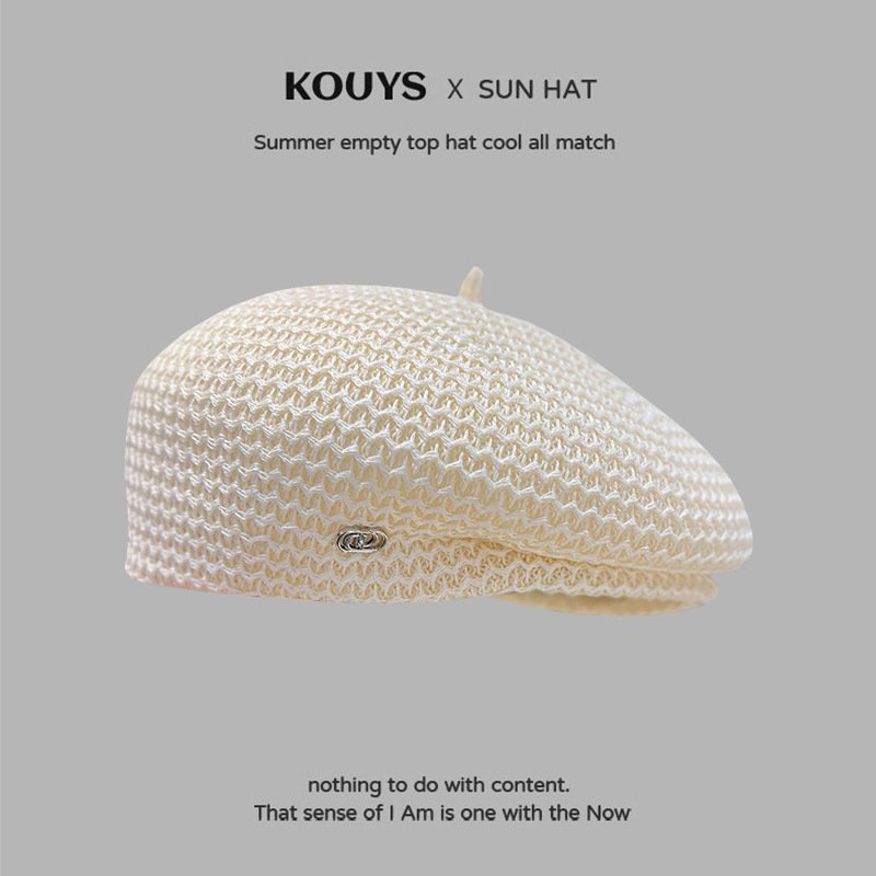 Yi Yi 새로운 일본 스타일 중공 베레 여성 우아한 얼굴 작은 통기성 얇은 메쉬 페인트 캡 블랙