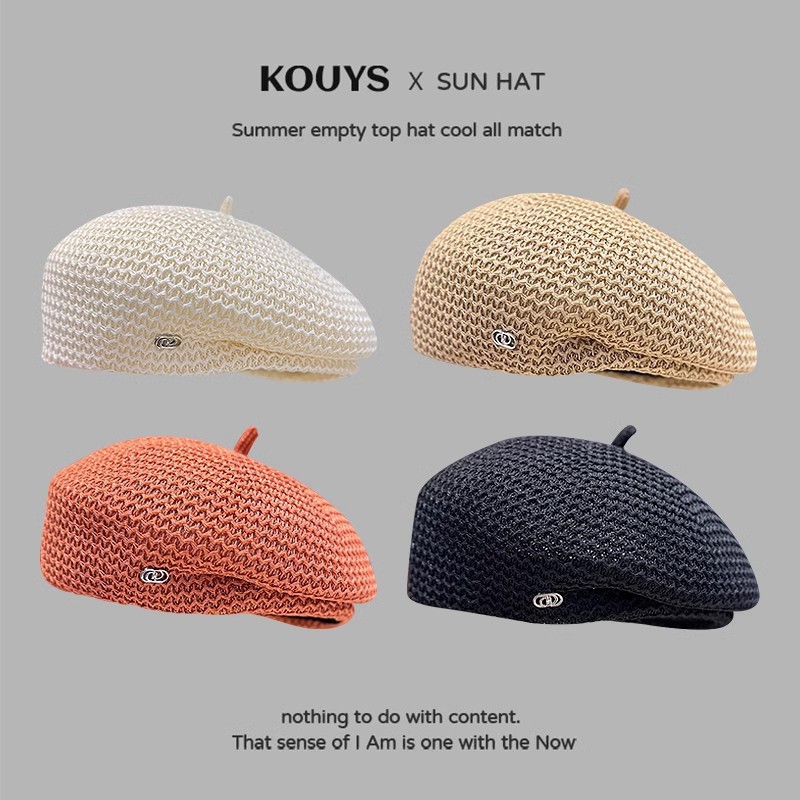 Yi Yi 새로운 일본 스타일 중공 베레 여성 우아한 얼굴 작은 통기성 얇은 메쉬 페인트 캡 블랙스토어 가기