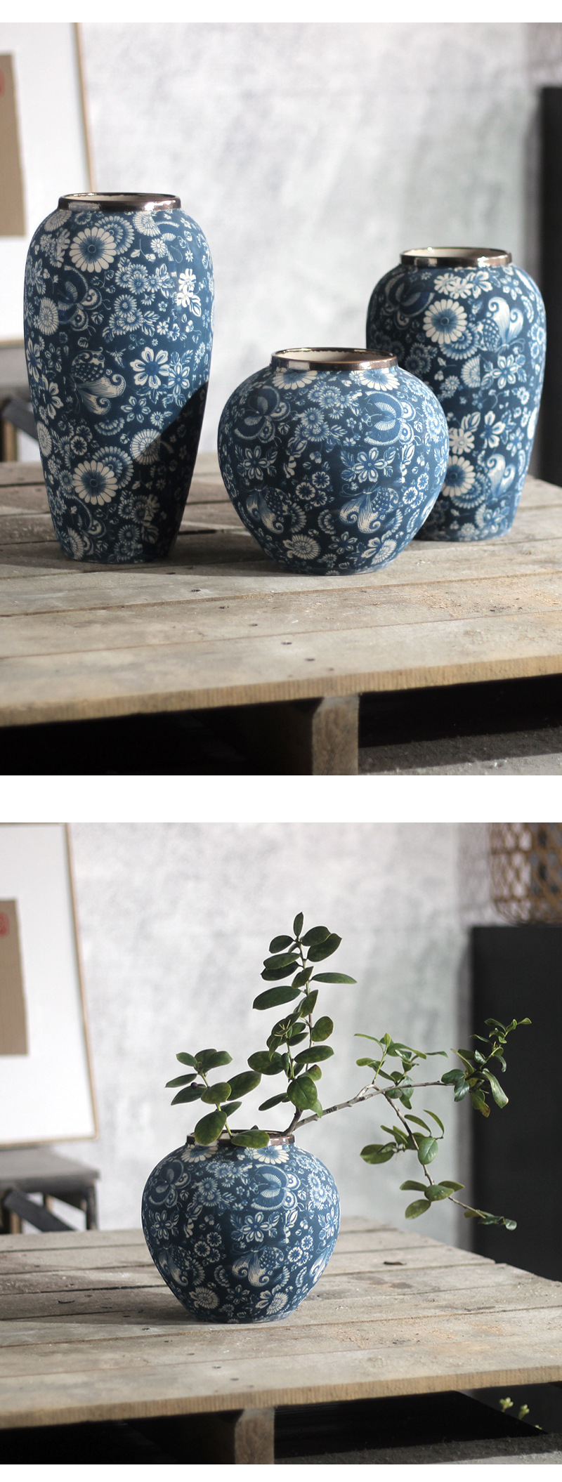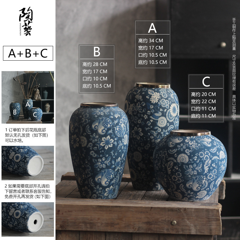 진코 말린 꽃 세라믹 블루와 꽃 꽃병 유럽식 중국 꽃 꽃병 Jingdezhen 테이블 꽃 꽃 장식품 빈티지 장식품스토어 가기