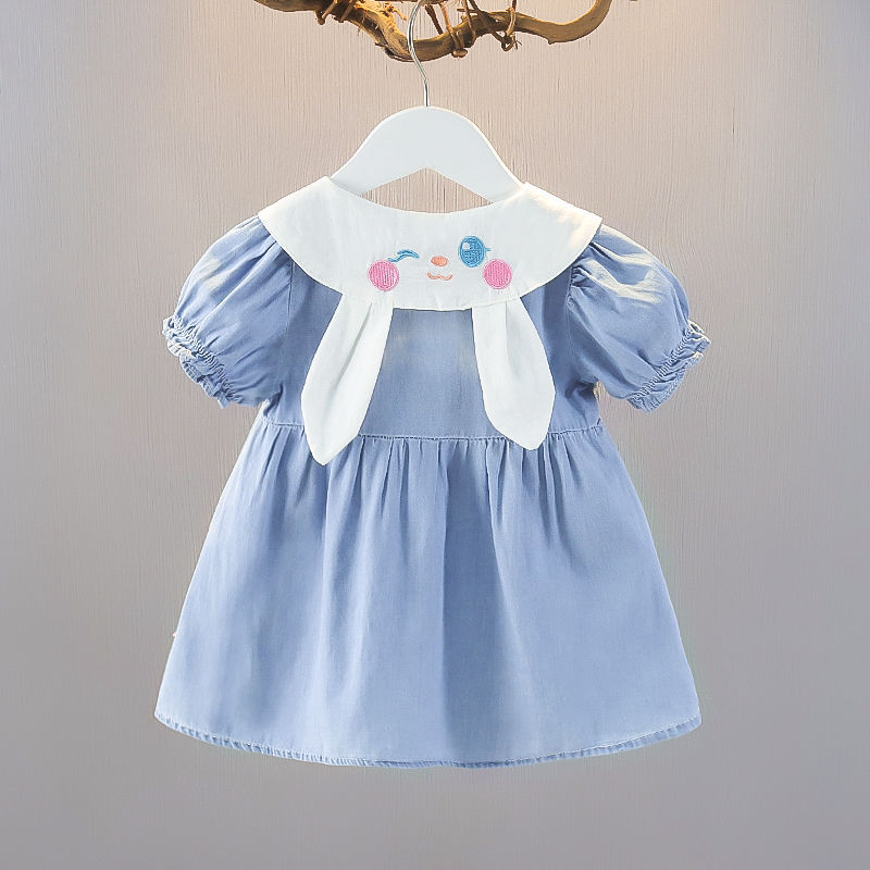 여자 여름 원피스 원피스 2024 새로운 슈퍼 귀여운 아기 소녀 웨스턴 스타일 얇은 어린이 슈퍼 귀여운 데님 치마