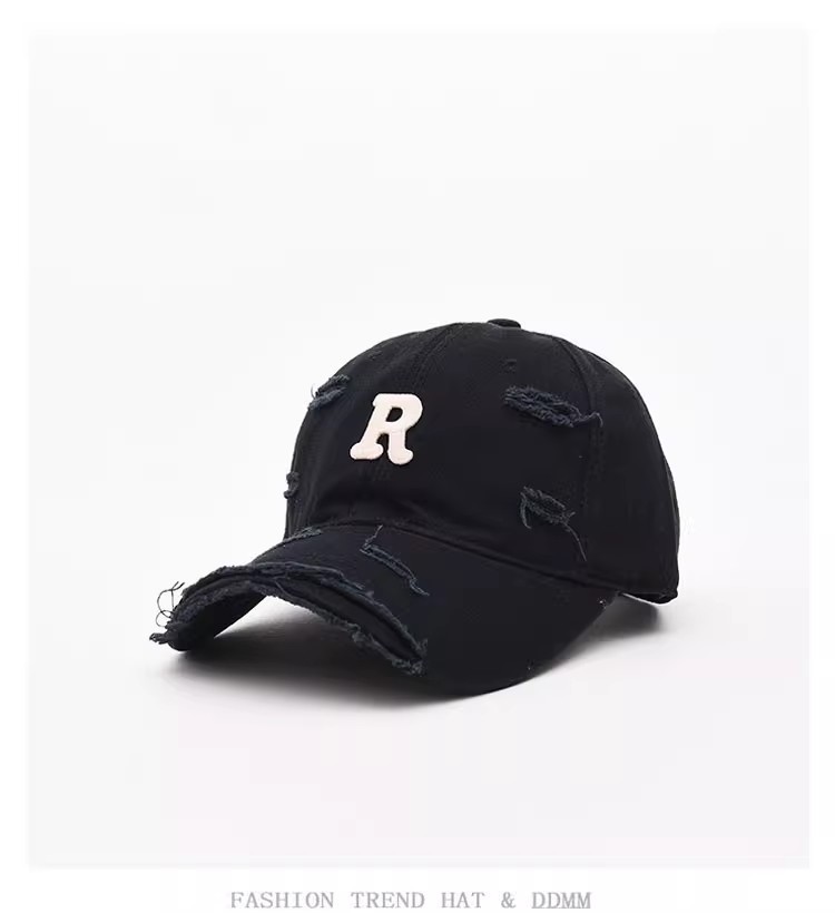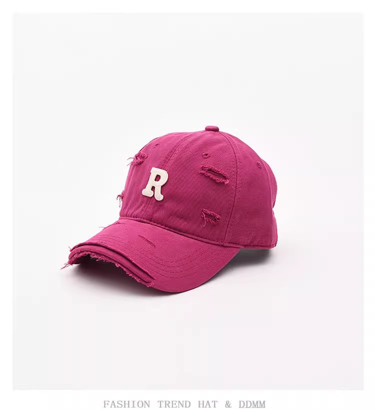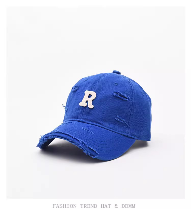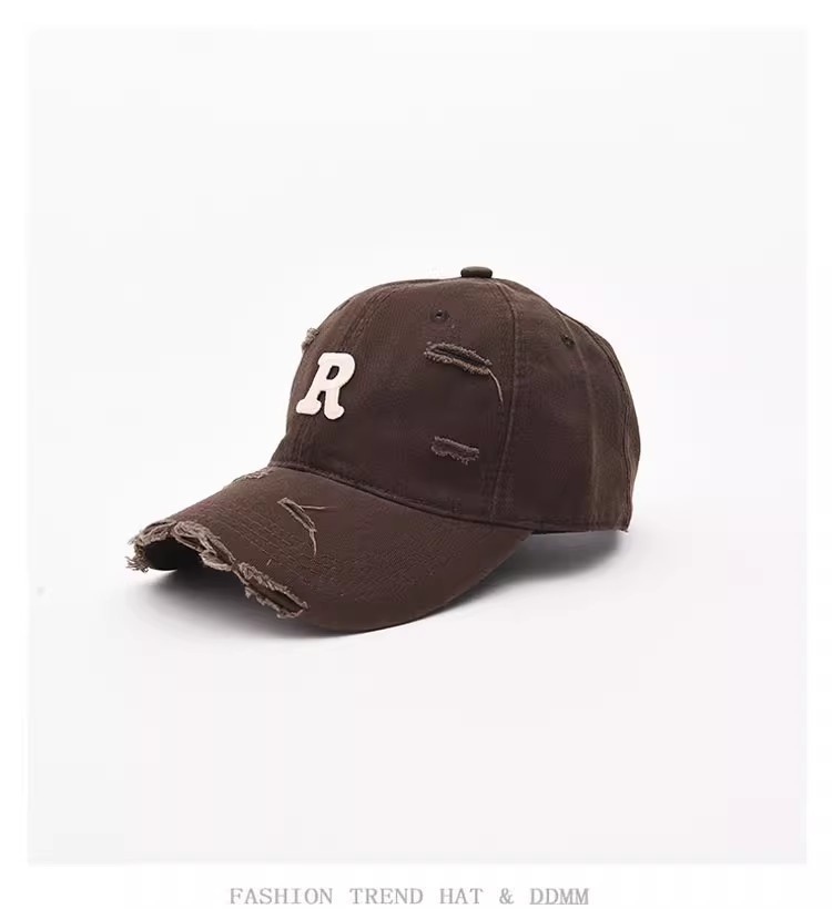Yi Yi R 편지 야구 모자 남자와 여자의 레트로 오래 된 코누 모자 봄과 여름 그늘 얼굴 작고 큰스토어 가기
