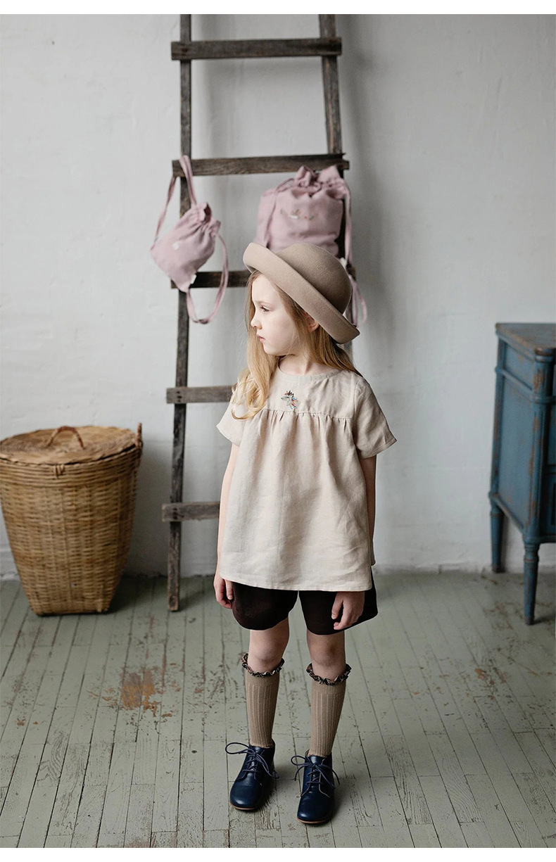 여아용 면마 반팔 베이비돌 셔츠, 가볍고 통기성 좋은 2026 유럽 및 미국 여름 신상 여아 티셔츠, 스타일리시한 상의