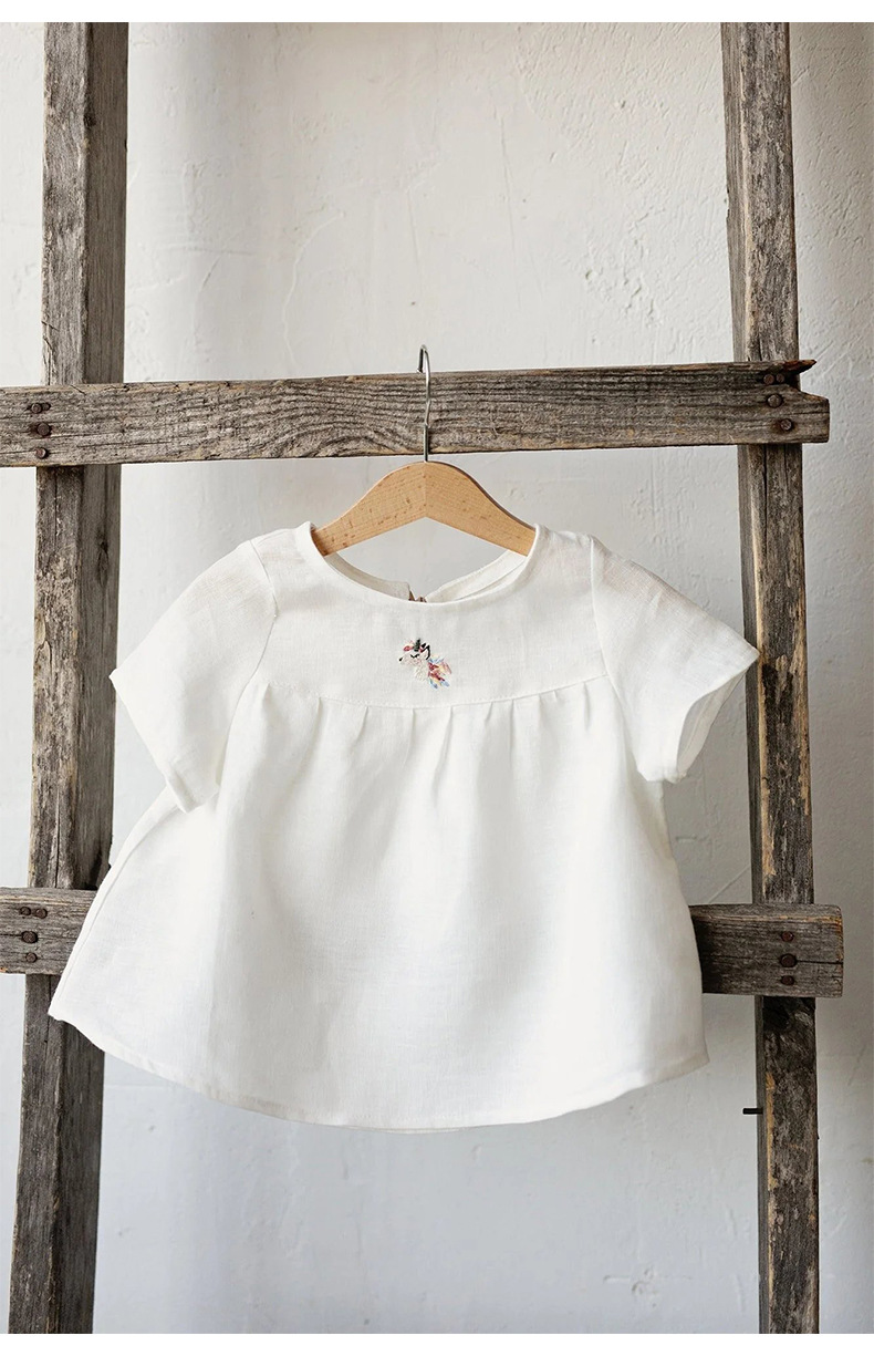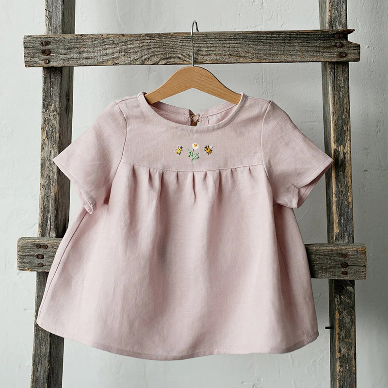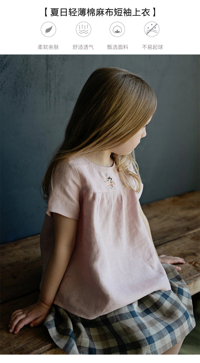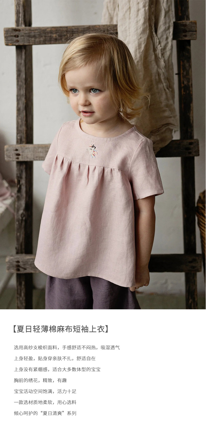여아용 면마 반팔 베이비돌 셔츠, 가볍고 통기성 좋은 2026 유럽 및 미국 여름 신상 여아 티셔츠, 스타일리시한 상의스토어 가기