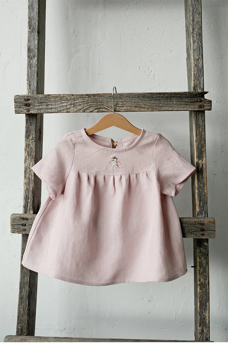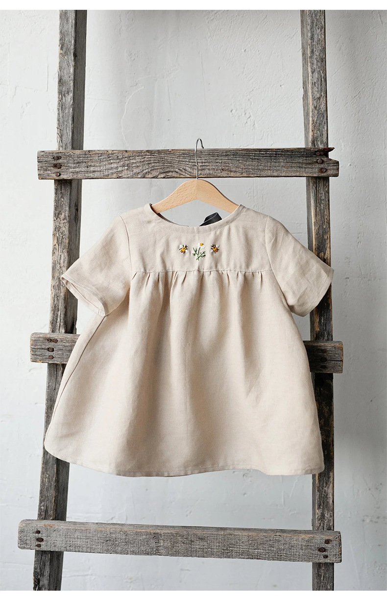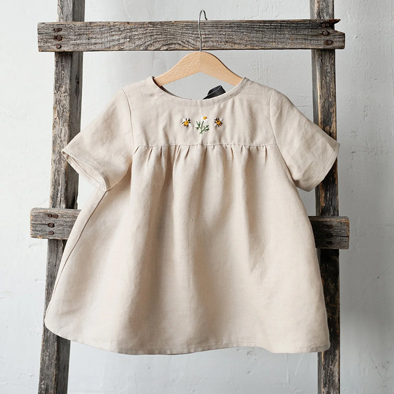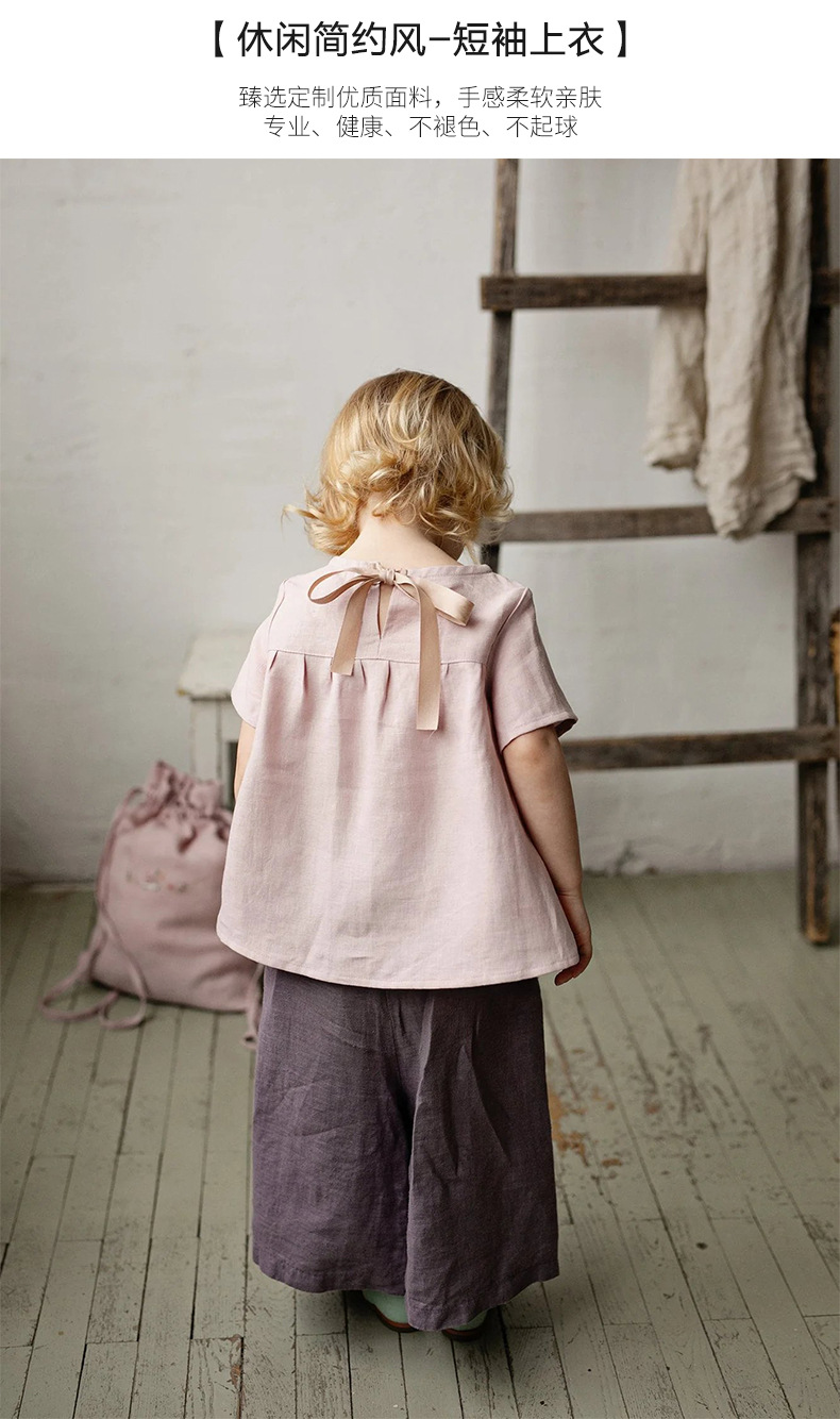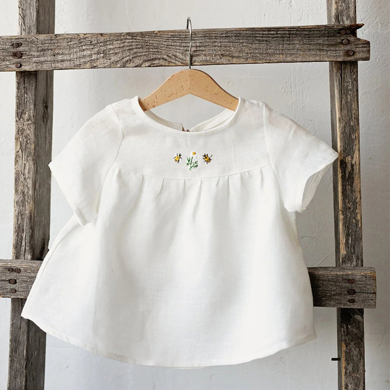 여아용 면마 반팔 베이비돌 셔츠, 가볍고 통기성 좋은 2026 유럽 및 미국 여름 신상 여아 티셔츠, 스타일리시한 상의스토어 가기