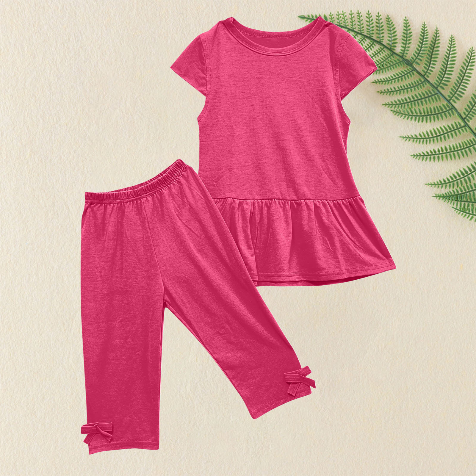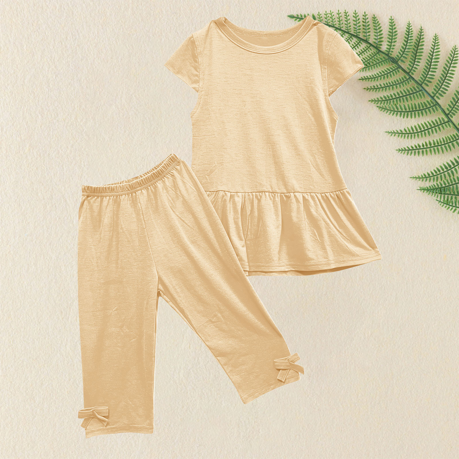 재고 아동복 여름 유럽과 미국 어린이 소녀 세트 단색 면 반팔 투피스 세트 아동복 세트 아동복스토어 가기