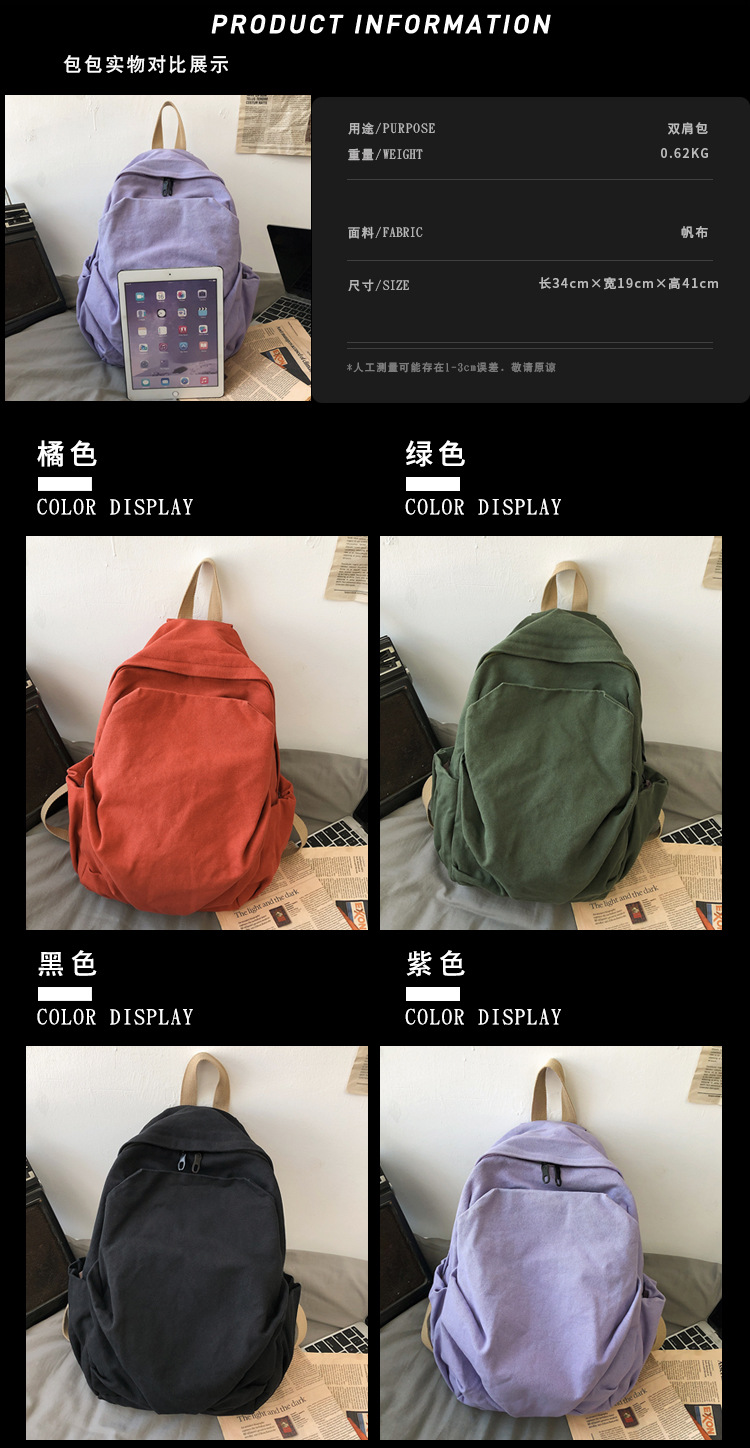 스쿨백 여대생 고등학생 일본식 간단한 골동품 배낭 먼지 저항하는 대용량 배낭 캔버스 가방 남성용