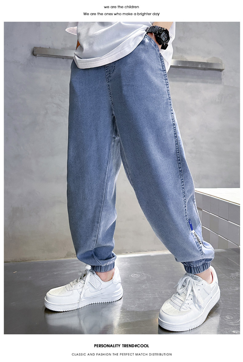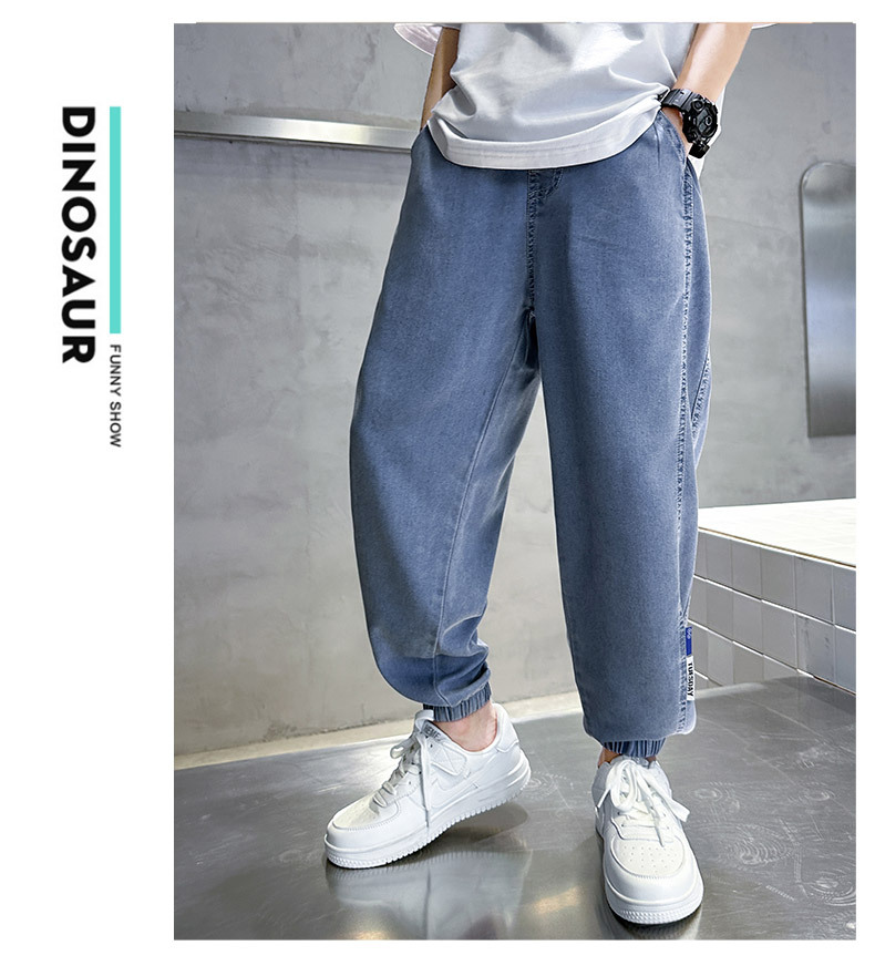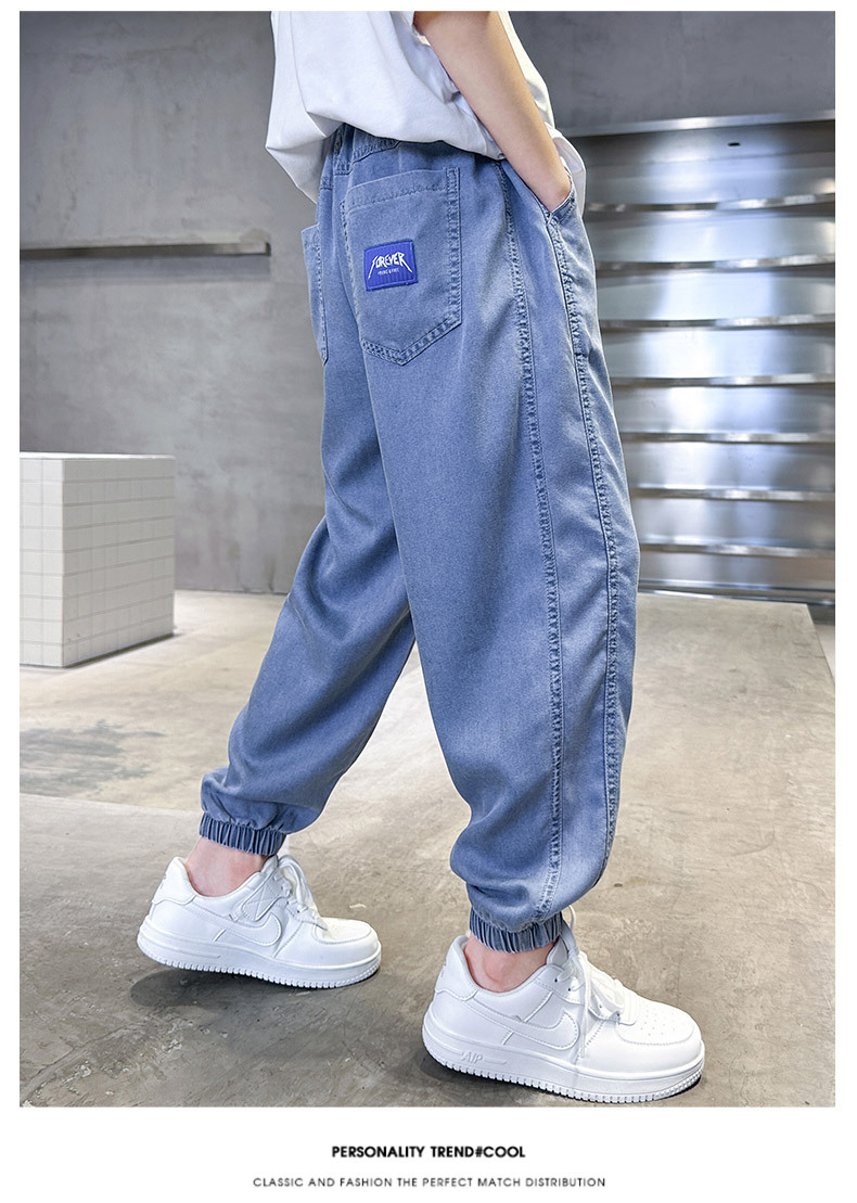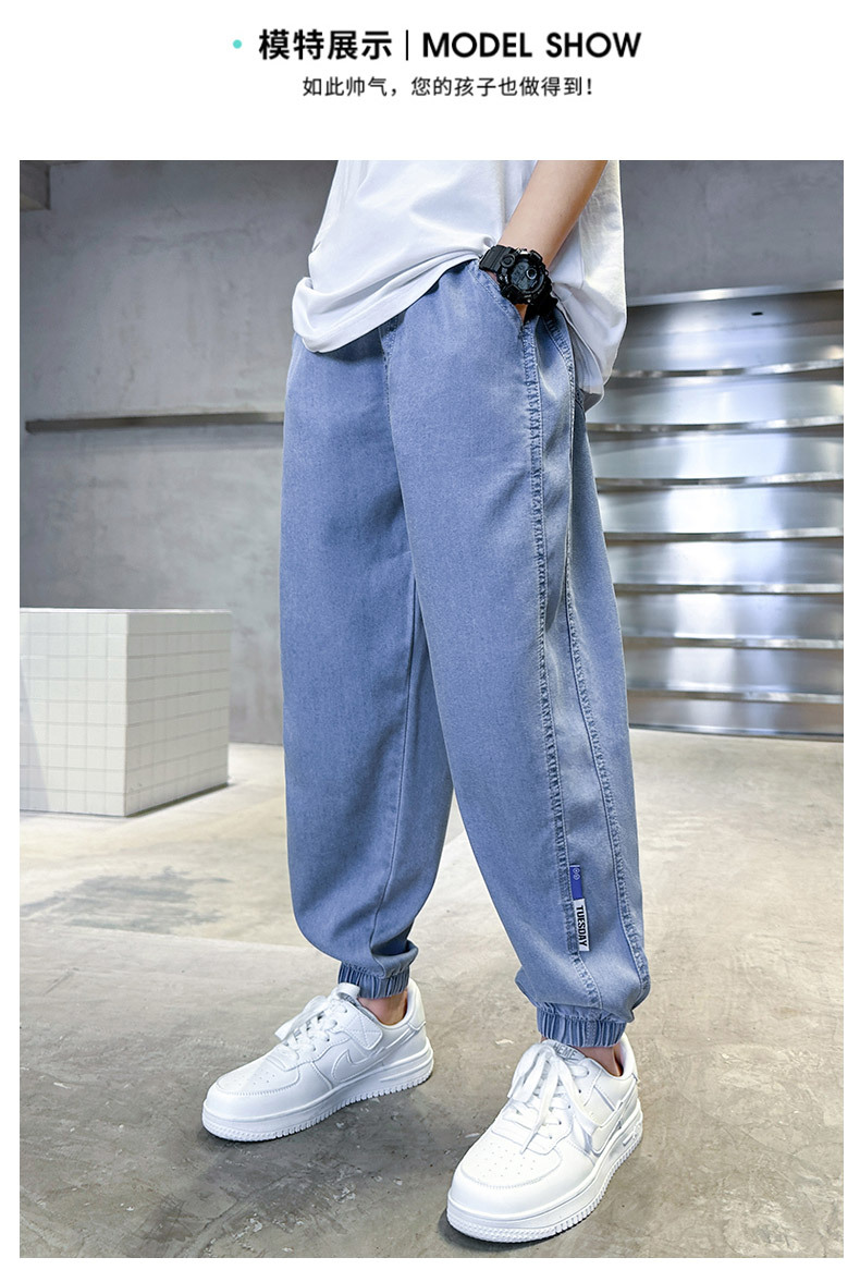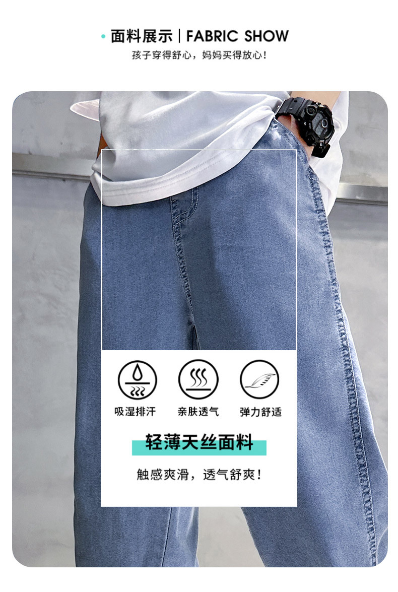 소년 여름 바지 얇은 텐셀 청바지 2025 여름 새 소년 얼음 실크 모기 방지 바지는 가볍고 통기성이 있습니다.