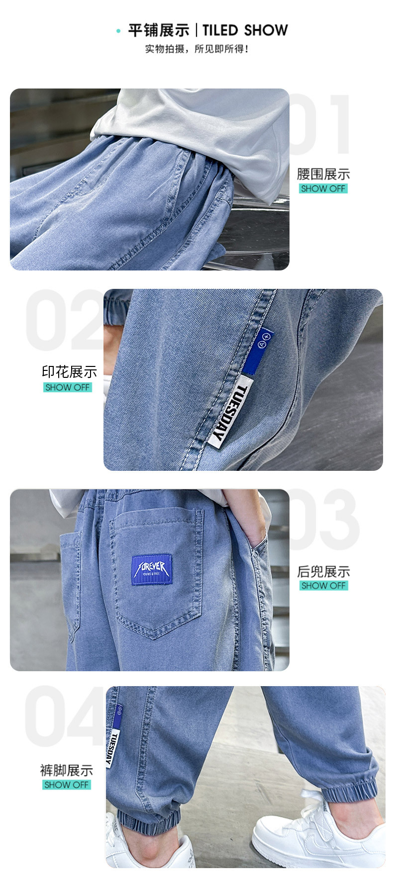 소년 여름 바지 얇은 텐셀 청바지 2025 여름 새 소년 얼음 실크 모기 방지 바지는 가볍고 통기성이 있습니다.스토어 가기