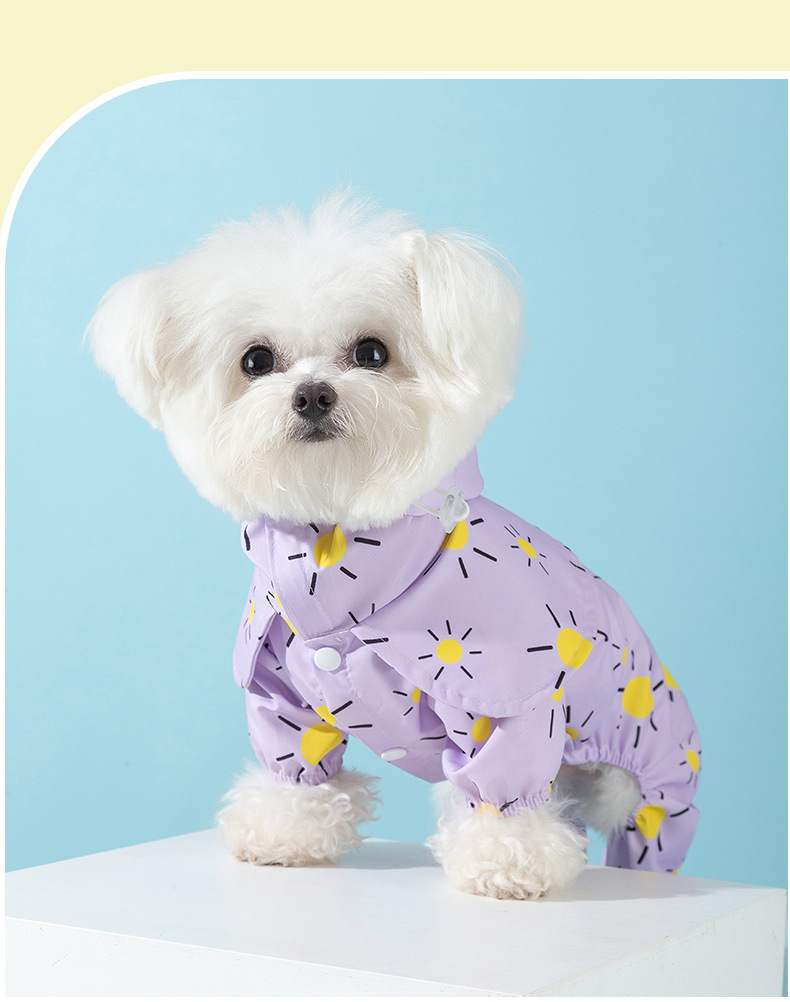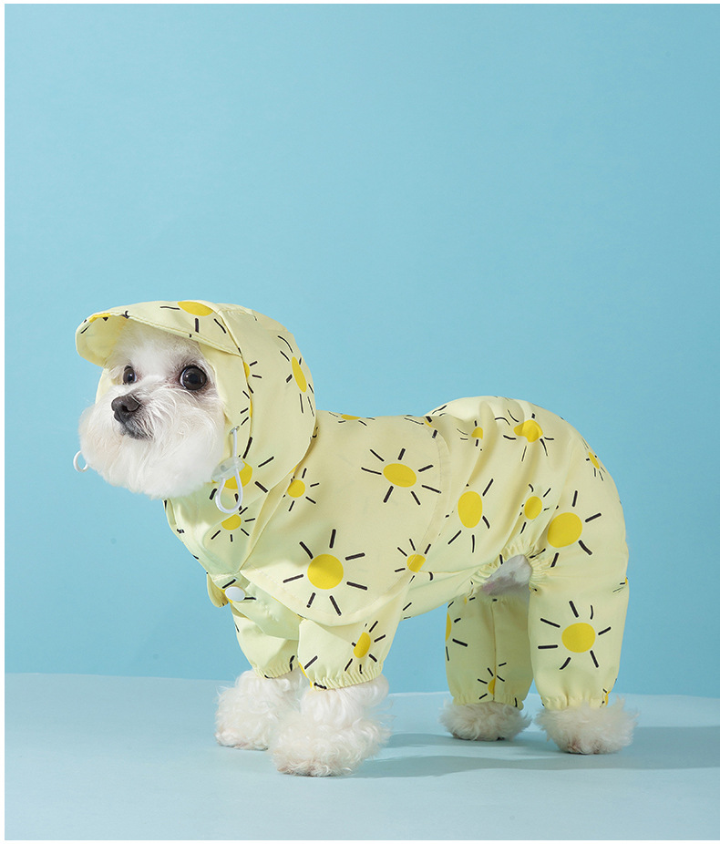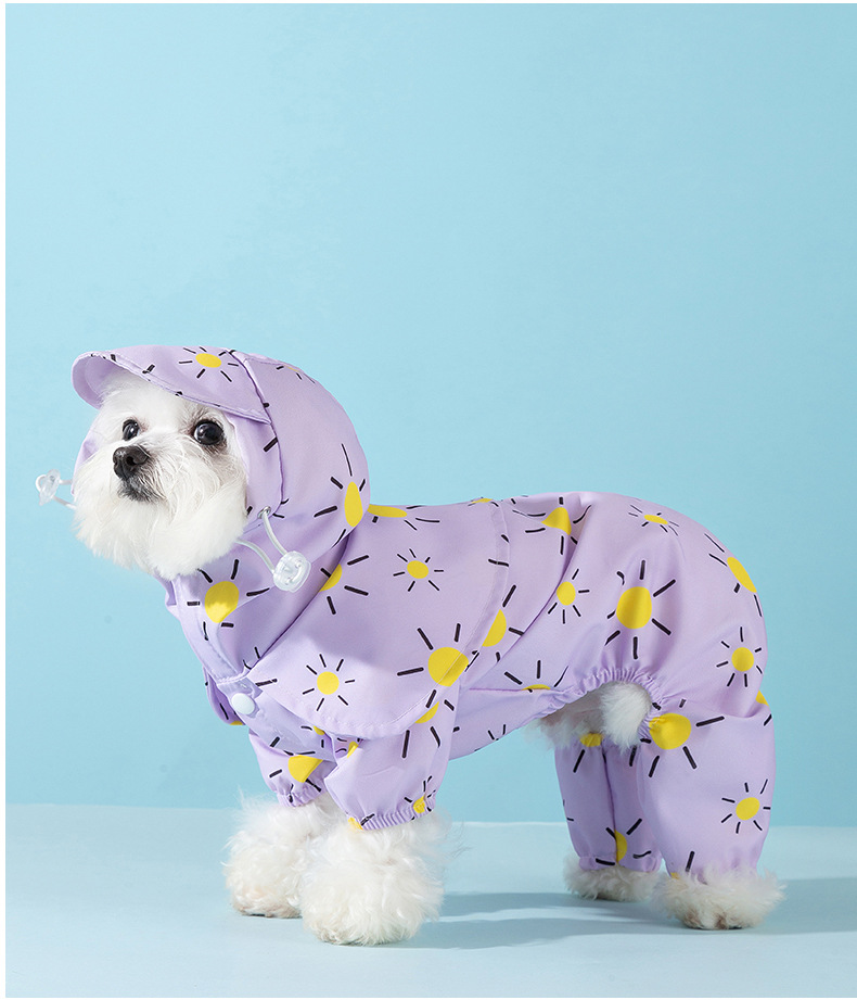 개 비오는 날 밖으로 색깔 태양 망토 네 다리 비옷 작고 중간 개 방수 모든 것을 포함하는 애완 동물 테디 옷