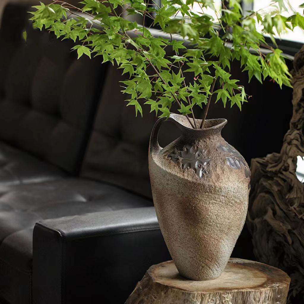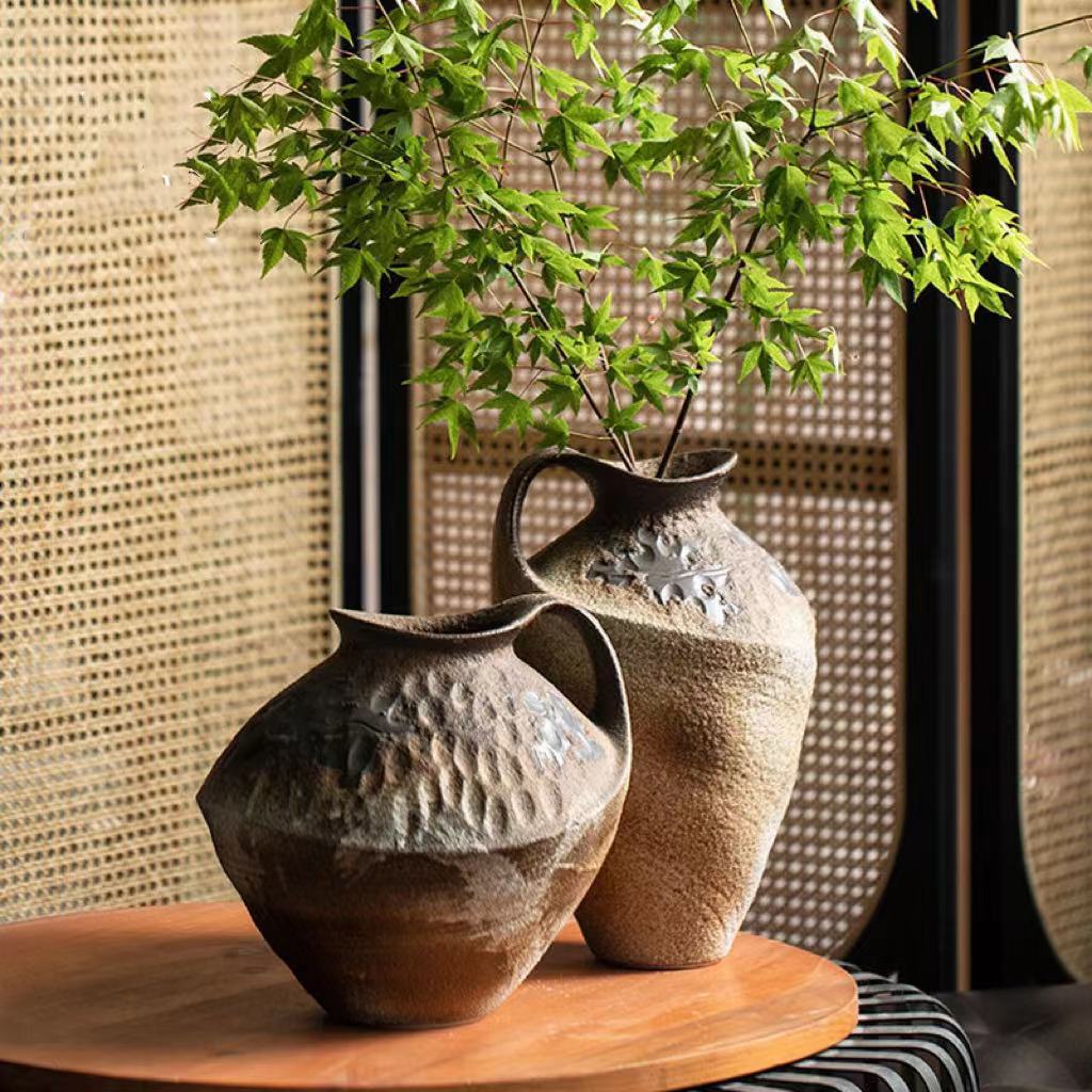 Jingdezhen 새로운 스타일 조용한 스타일 선 장식품 세라믹 꽃병 레트로 거친 도자기 냄비 삽입 말린 꽃 장식품스토어 가기