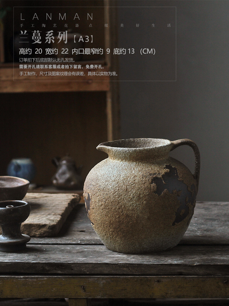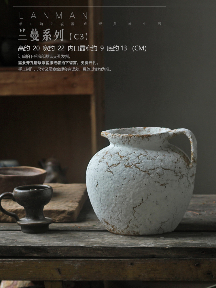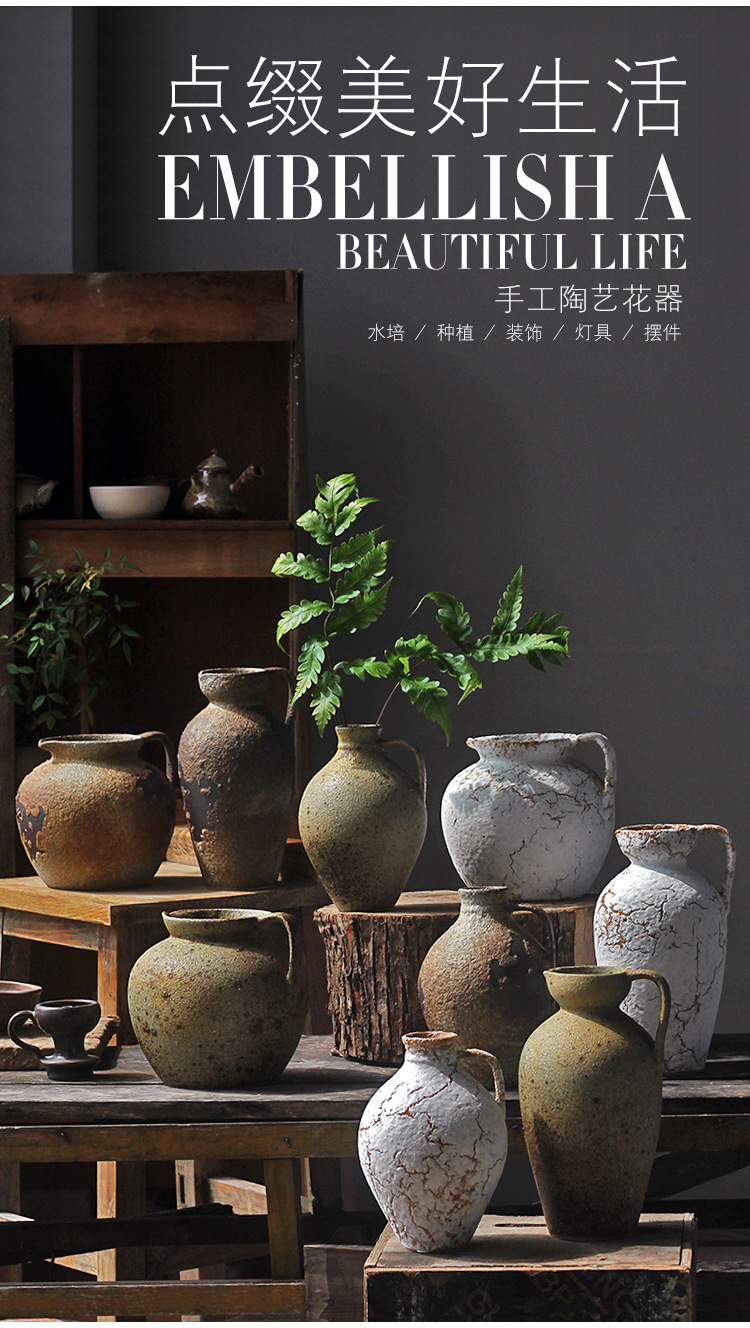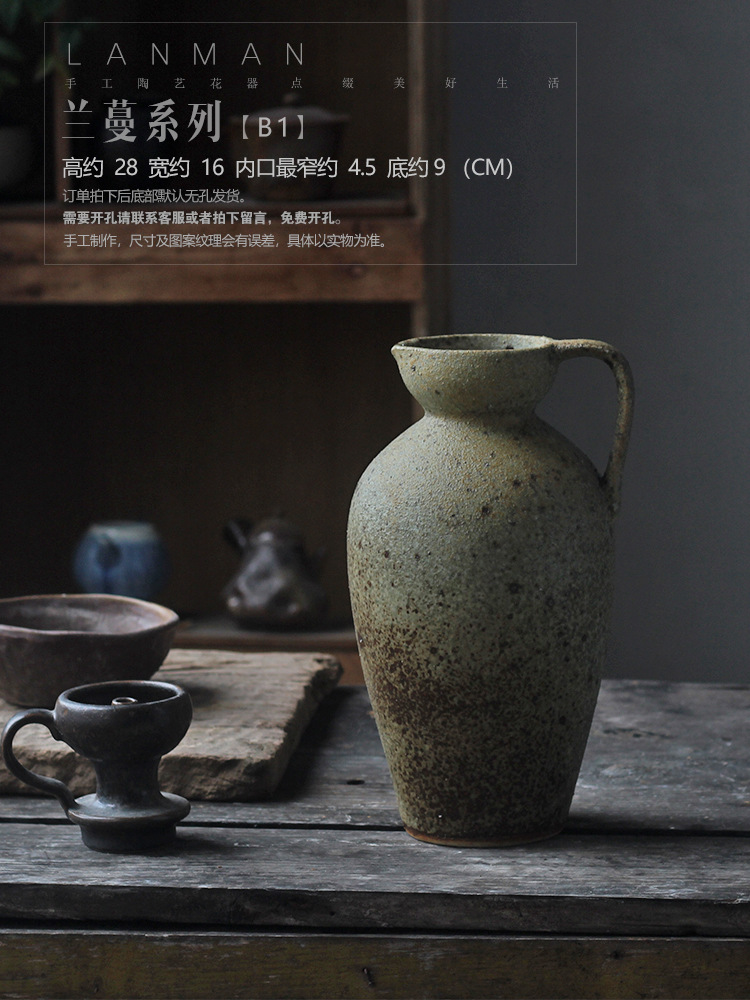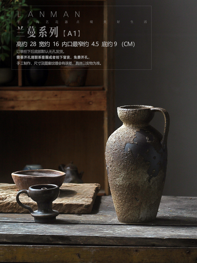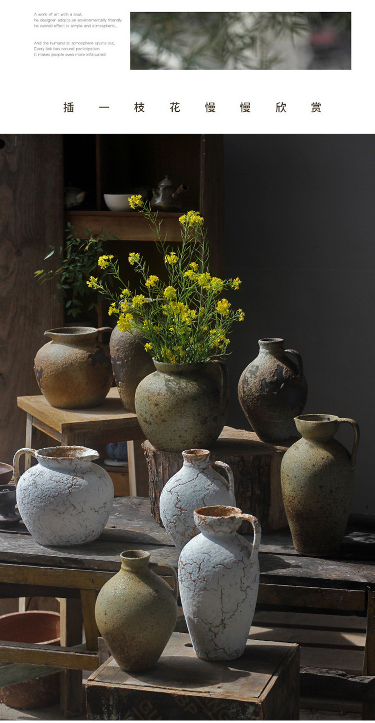 세라믹 꽃병 거친 도자기 꽃 레트로 향수 수제 홈스테이 호텔 사일런트 스타일 선 장식품 도자기 꽃스토어 가기