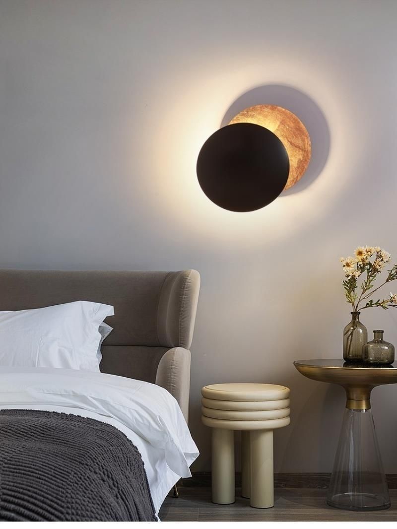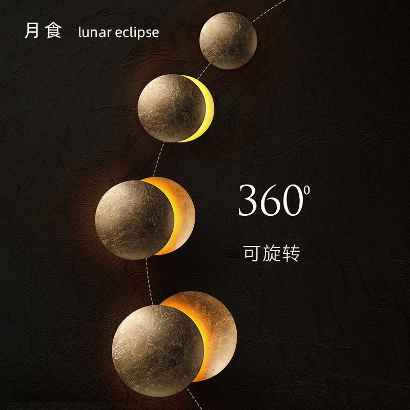 LED 일식 달이 가득 침실 벽 램프 통로 북유럽 조명 럭셔리 현대 회전식 머리맡 철 계단 램프