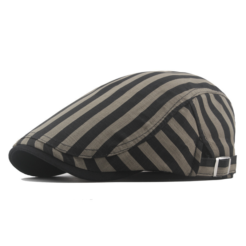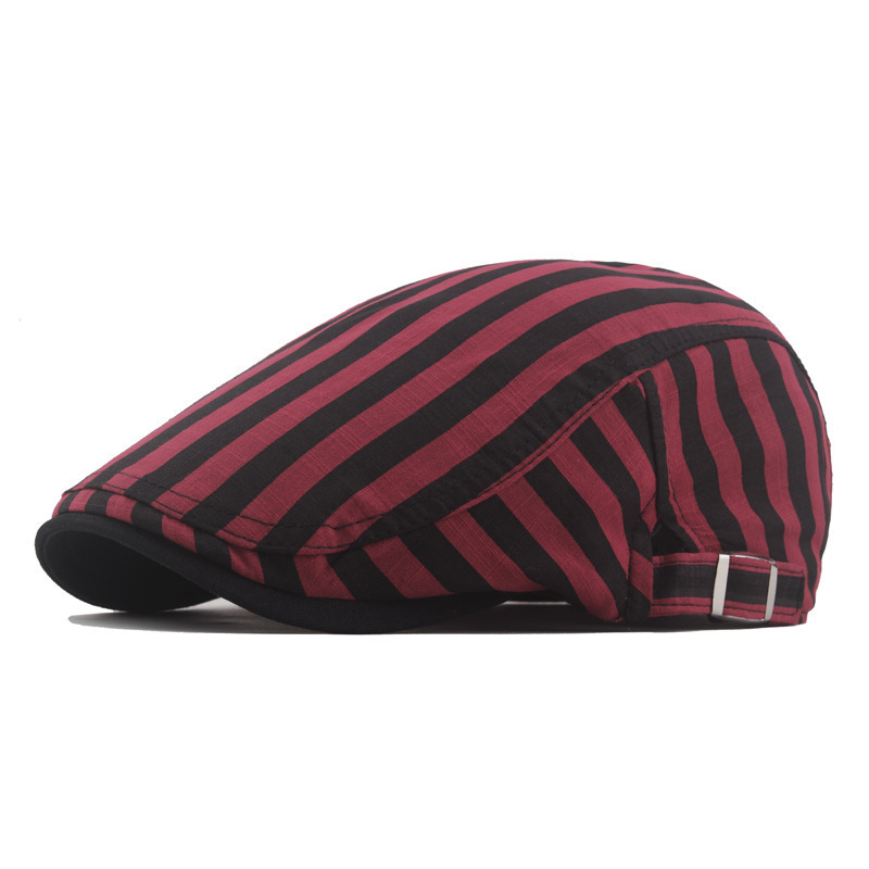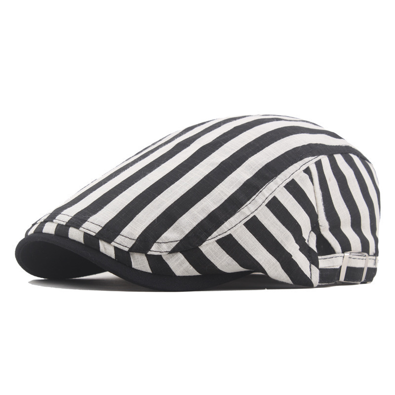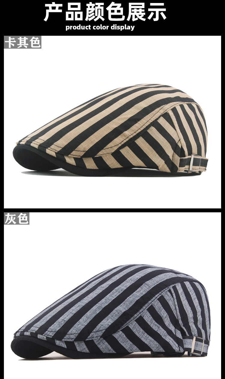 Yi Yi 컬러 스트라이프 얇은 베레 여성 싱글 레이어 통기성 봄과 여름 앞으로 모자 젊은 남자 햇빛 오리스토어 가기