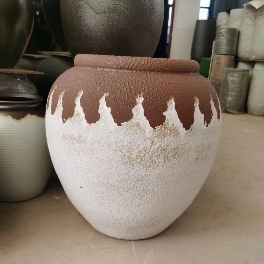 조용한 스타일 빈티지 석기 꽃병 거실 안뜰 바닥-서있는 수경 꽃-대형 배 둥근 도자기 냄비 중국 스타일 장식품스토어 가기
