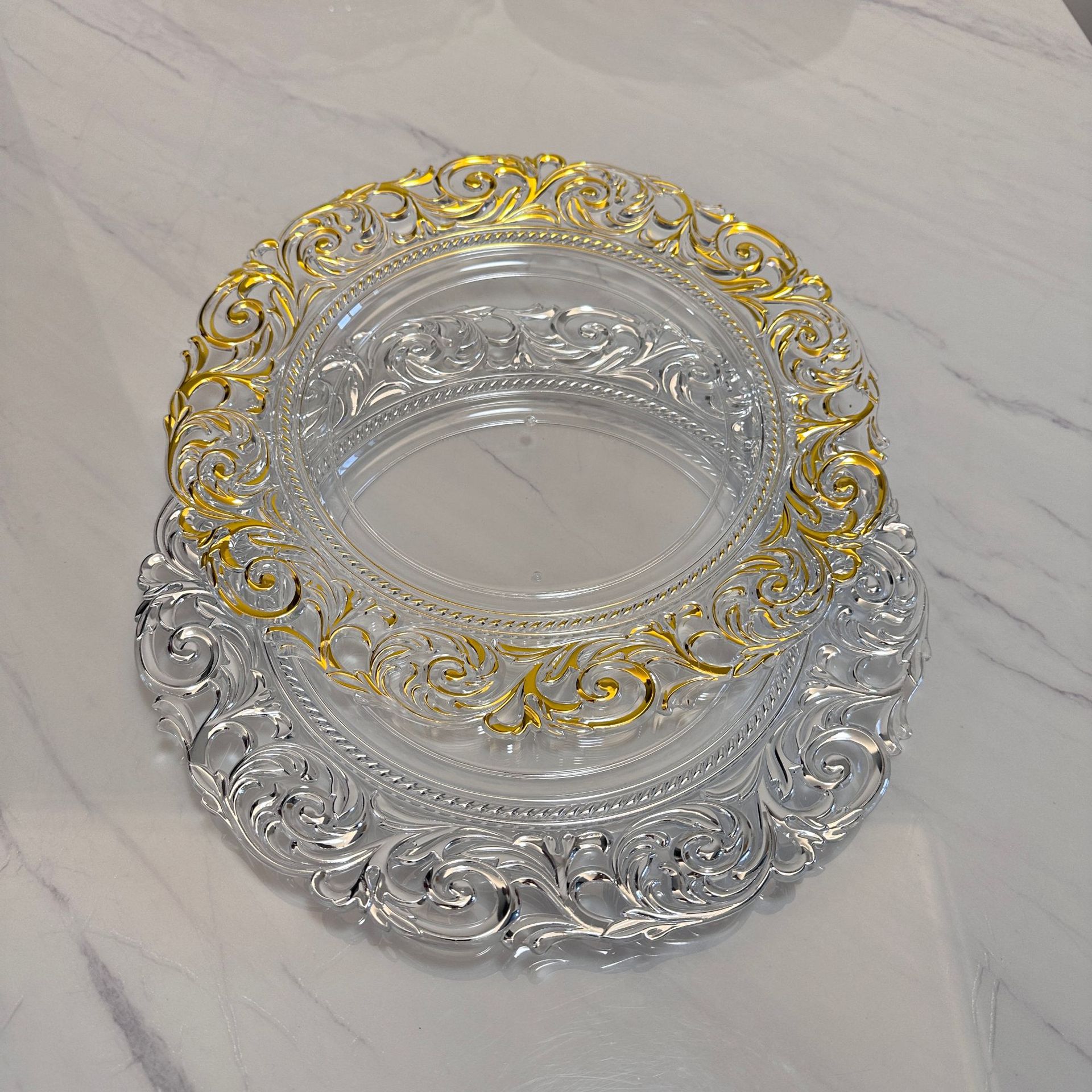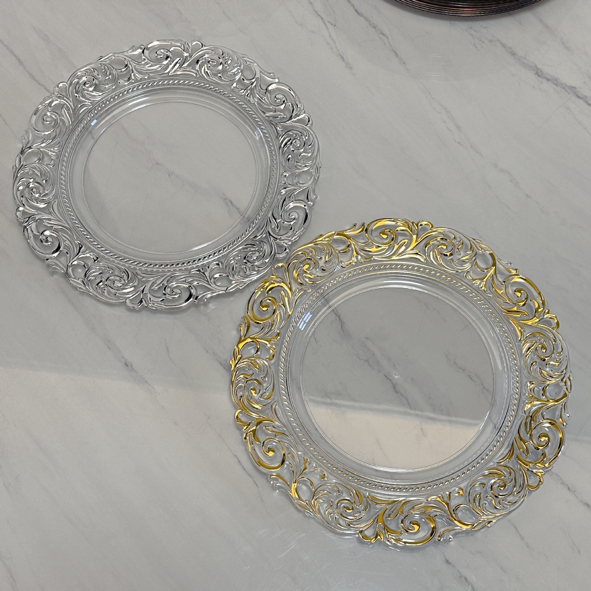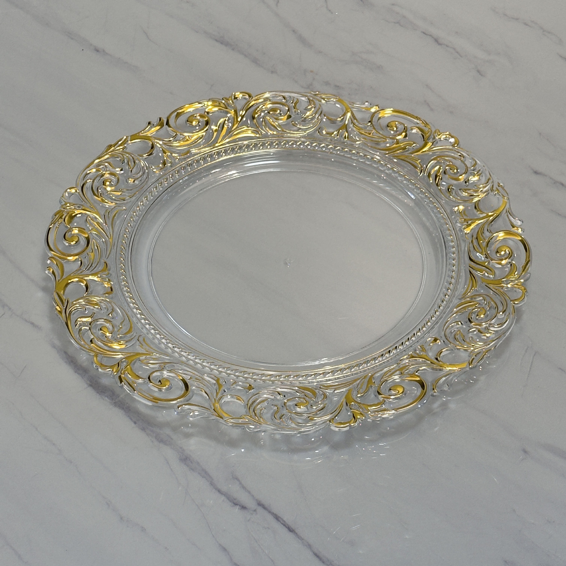 충전기 플레이트 투명 골드 도금 플레이트 과일 플레이트 연회 멋진 플레이트 쿠션 플레이트 웨스턴 플레이트 샐러드 플레이트 도매