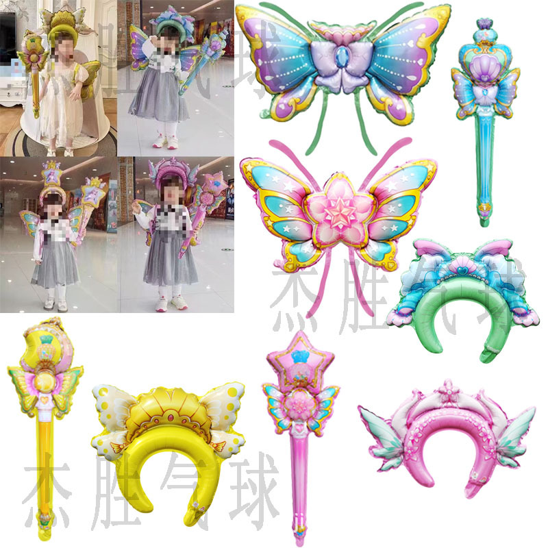 발랄라 리틀 매직 페어리 풍선 어린이 선물 헤드웨어 헤어 밴드 풍선 핸드 헬드 스틱 요정 스틱 날개 알루미늄 필름 풍선스토어 가기