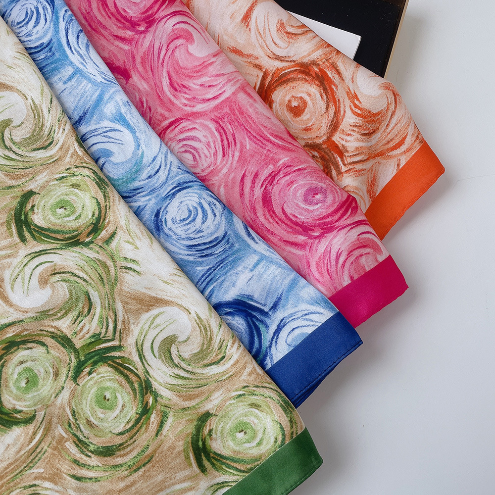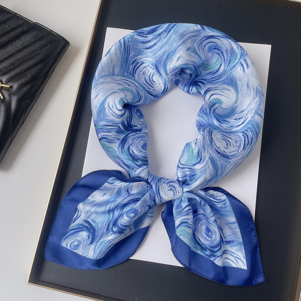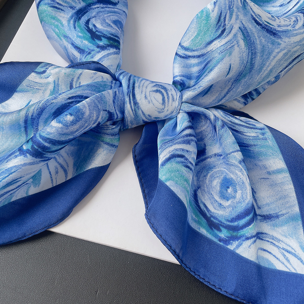 아름다운 반 고흐 스타 스카프 70x70cm 스퀘어 스카프 여성의 여름 새로운 부드럽고 부드러운 스카프 스카프 실크 같은