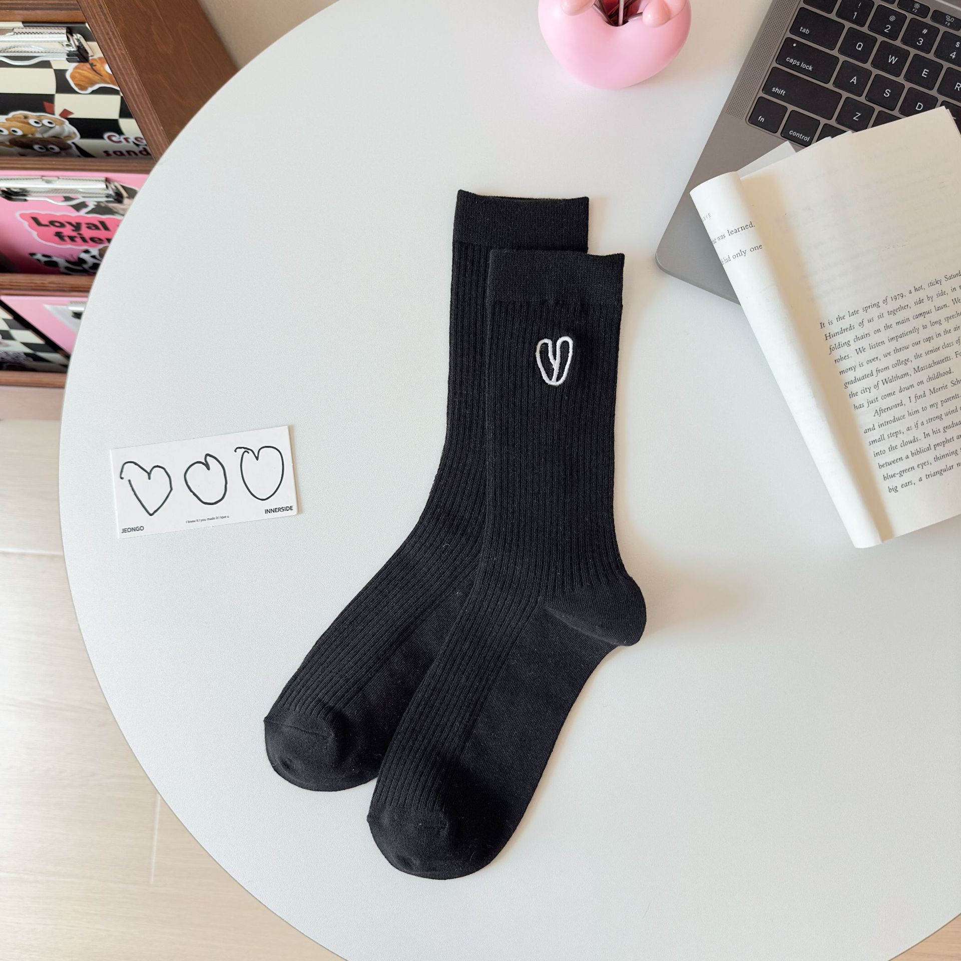 블랙 심플 양말 여성 미드 튜브 양말 얇은 봄과 여름 일본 사랑 화이트 스포츠 스타킹스토어 가기
