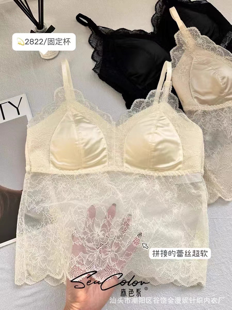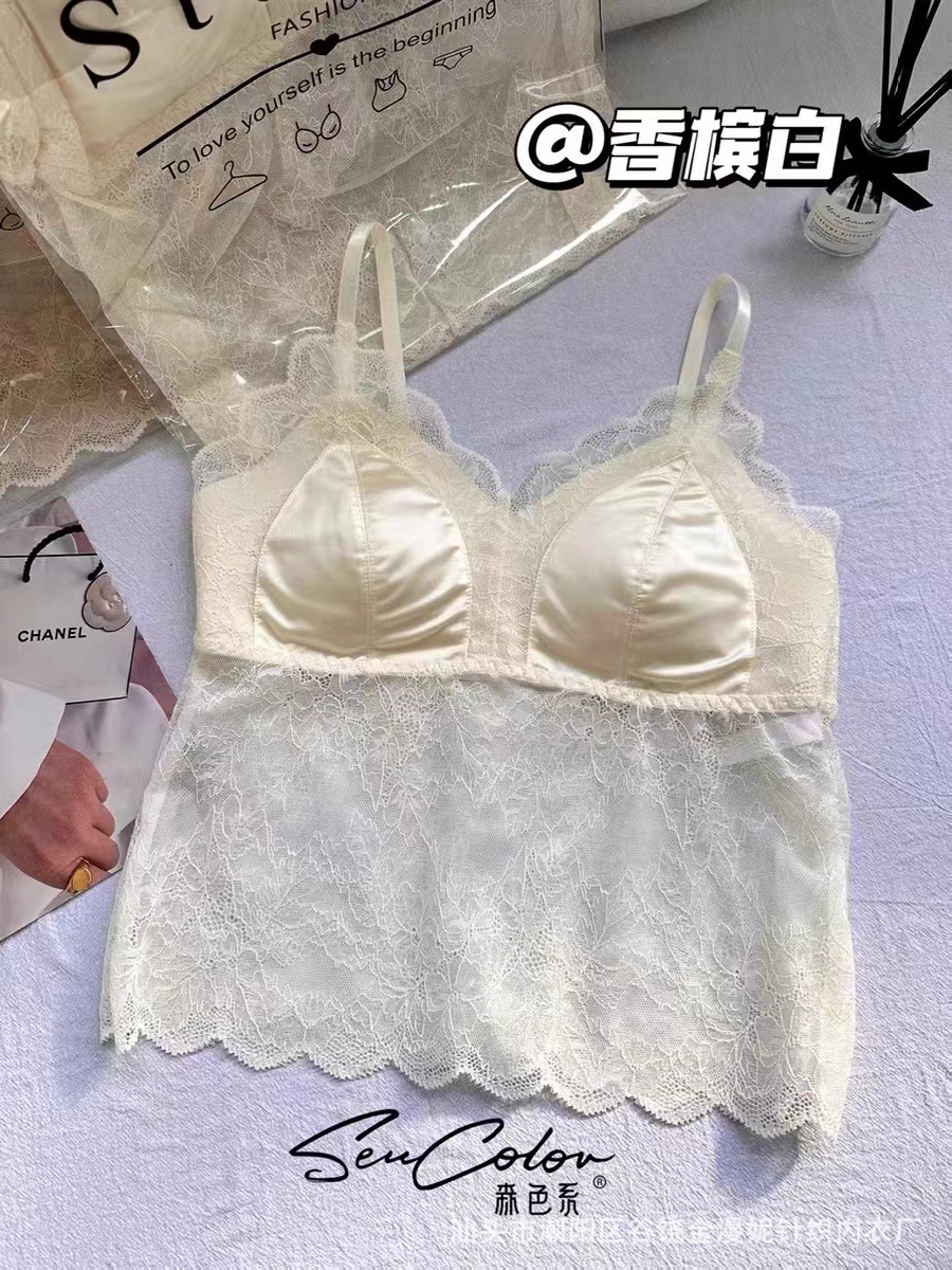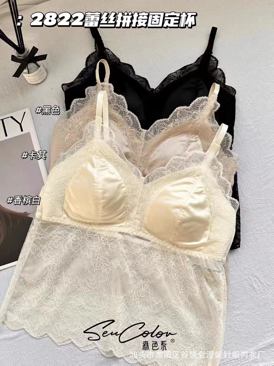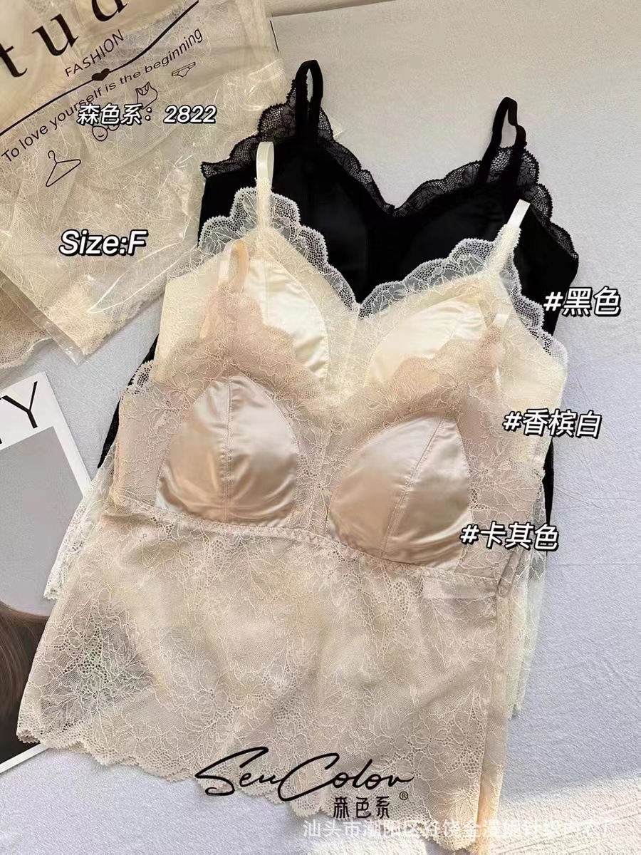 모리 2822 프랑스 새틴 레이스 아름다운 뒤로 고정 컵 하이 퀄리티 슬링 행거 조끼 튜브 탑 속옷스토어 가기