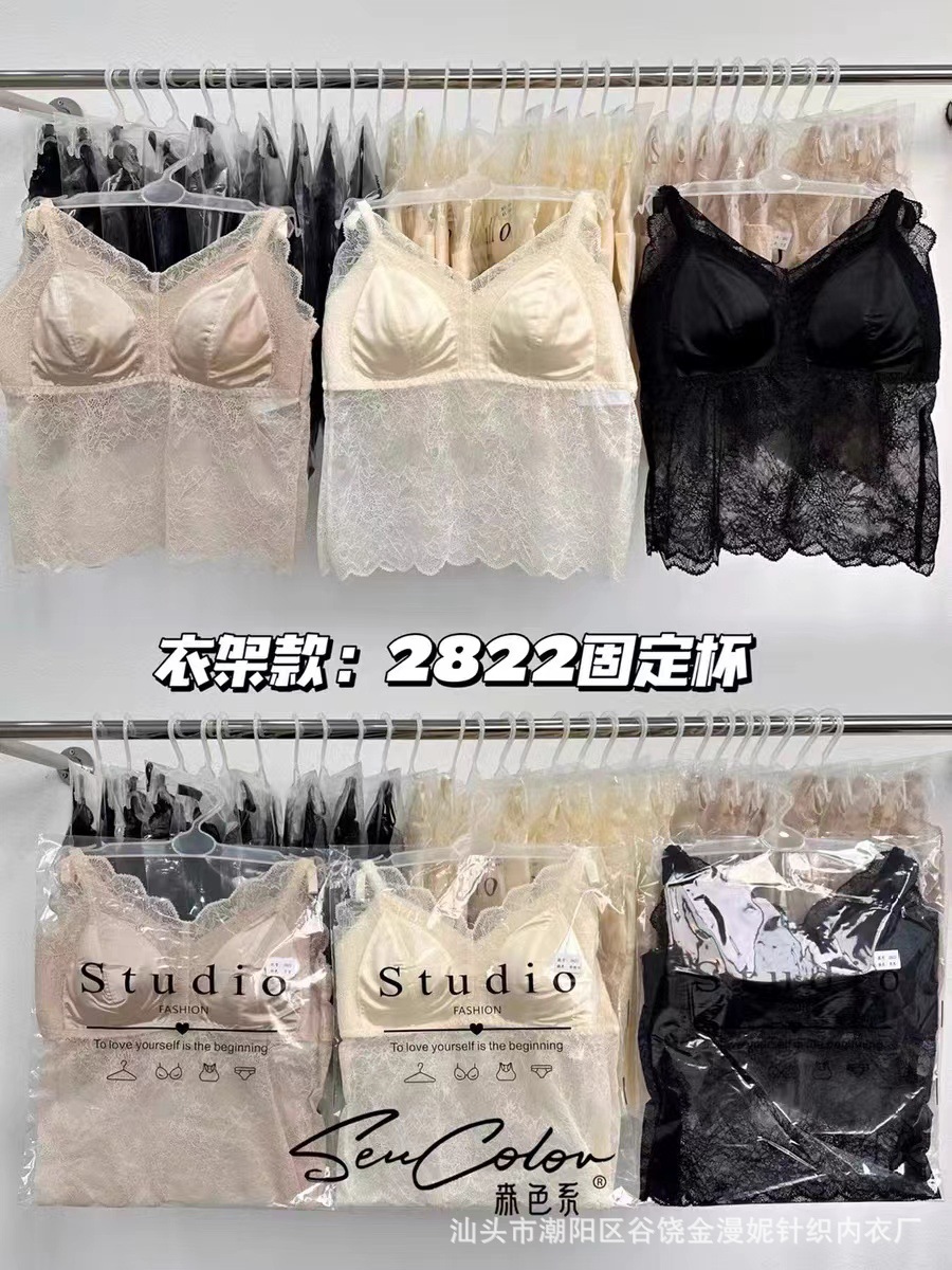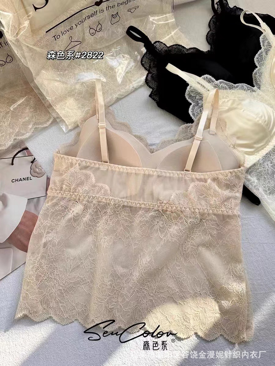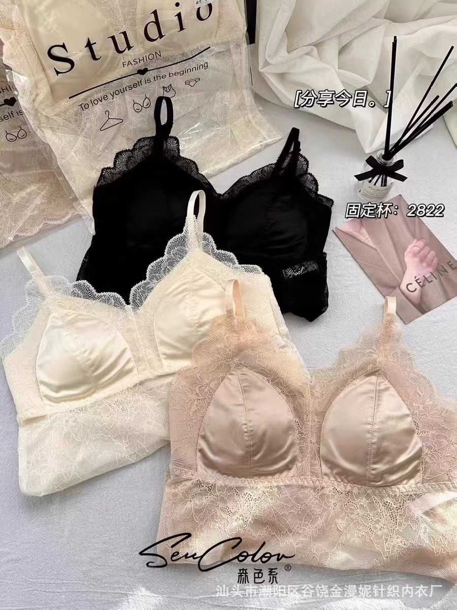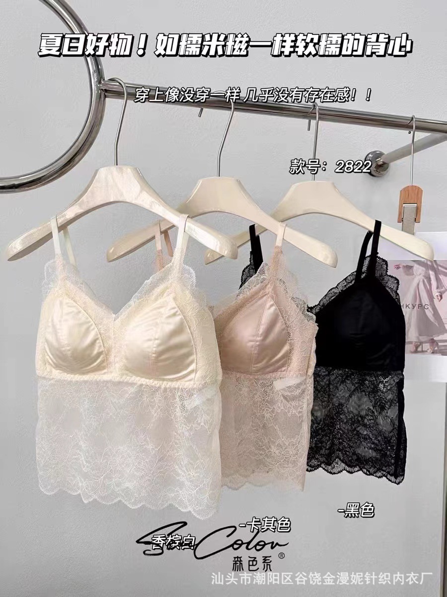 모리 2822 프랑스 새틴 레이스 아름다운 뒤로 고정 컵 하이 퀄리티 슬링 행거 조끼 튜브 탑 속옷스토어 가기