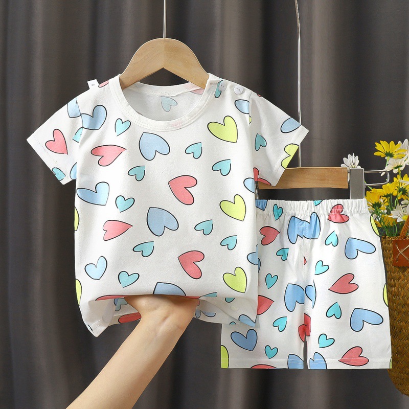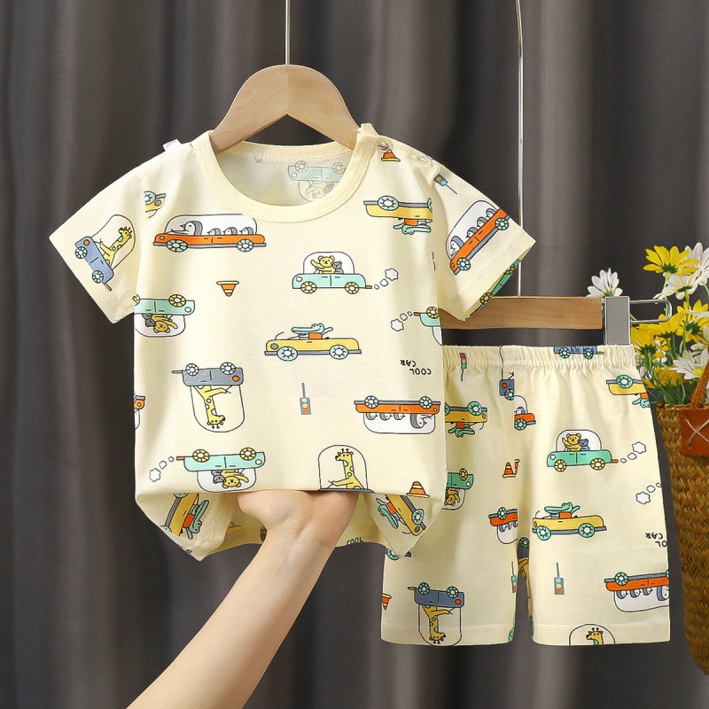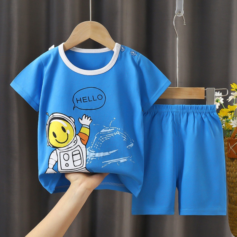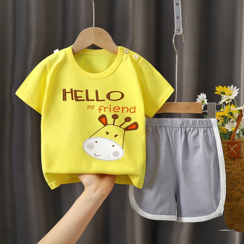 어린이 반팔 반바지 세트 중소형 어린이 여름 아기면 속옷 소년 소녀 둥근 목 티셔츠 도매스토어 가기