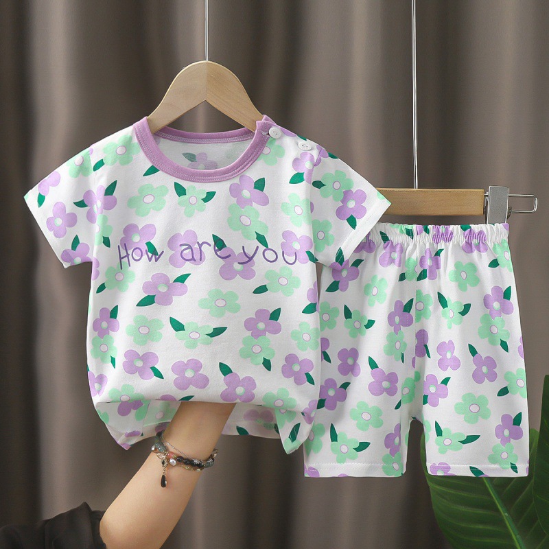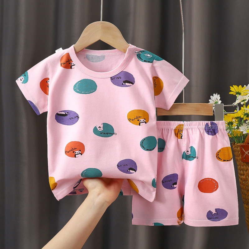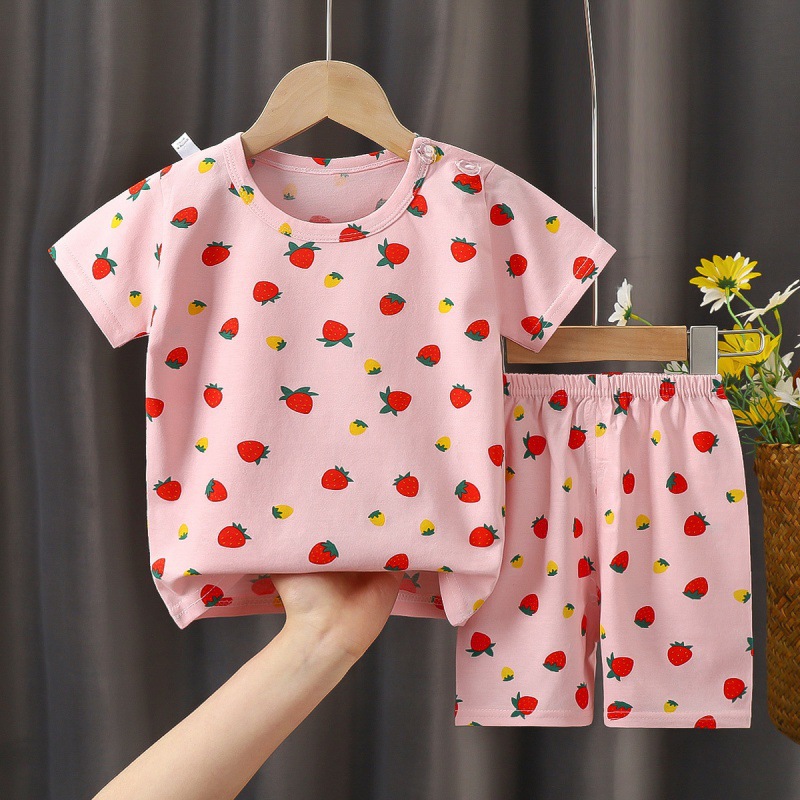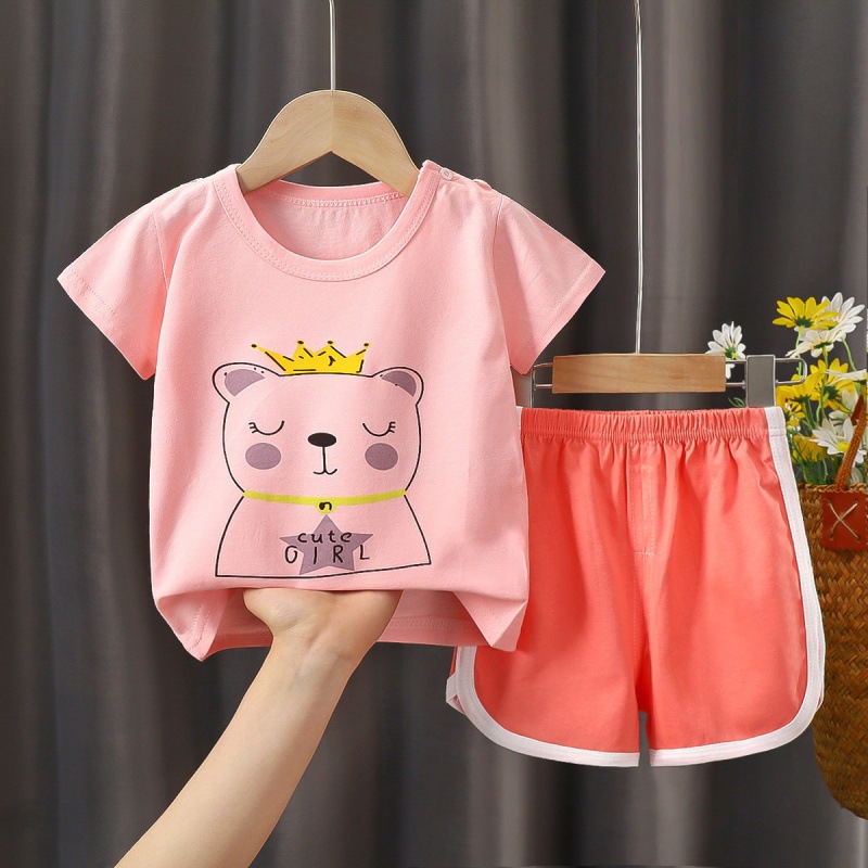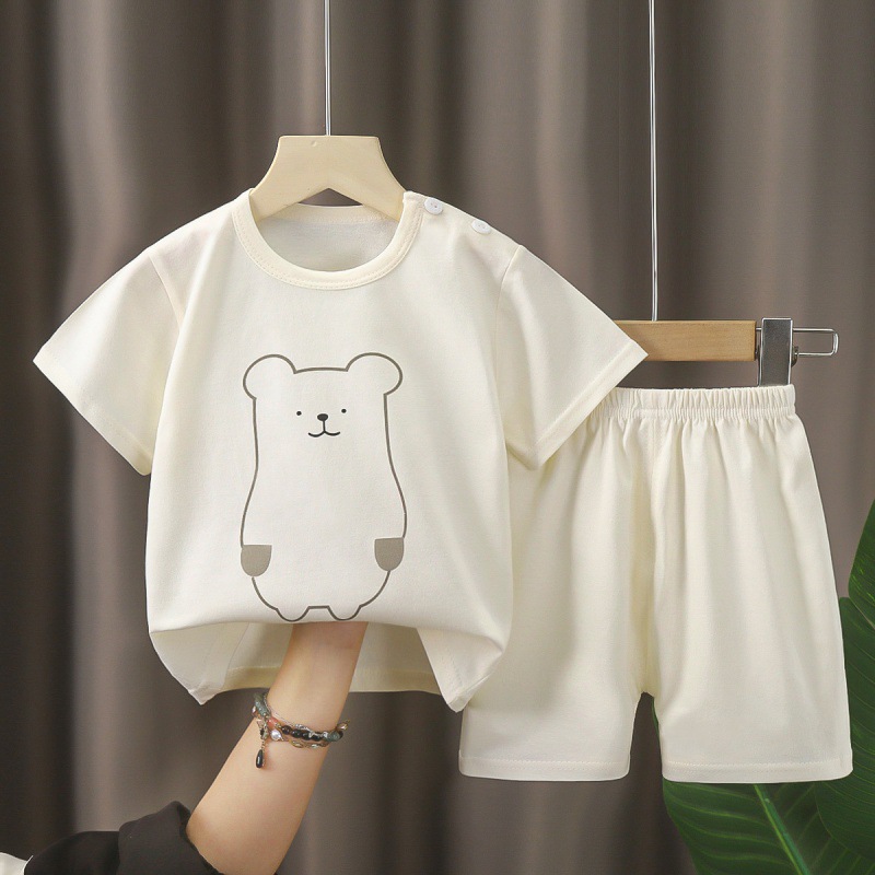어린이 반팔 반바지 세트 중소형 어린이 여름 아기면 속옷 소년 소녀 둥근 목 티셔츠 도매