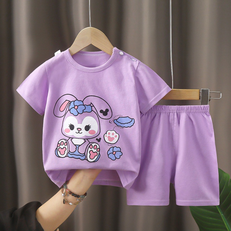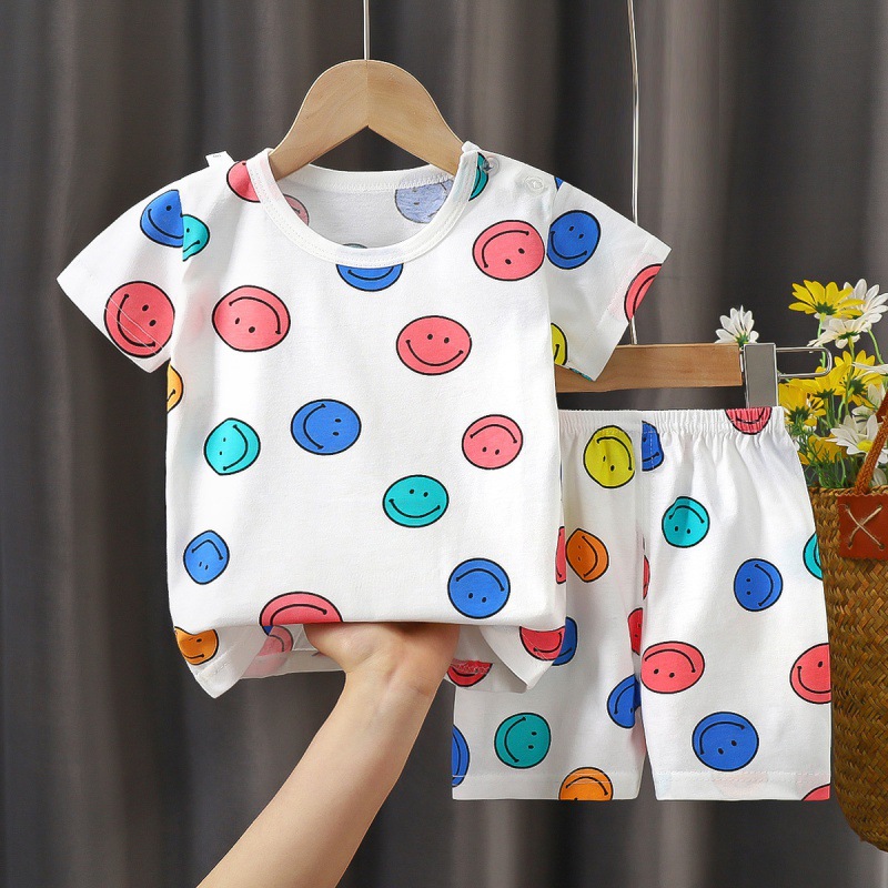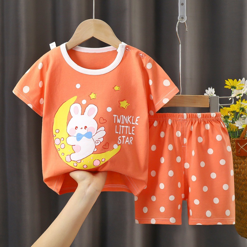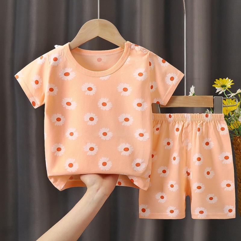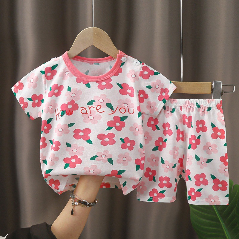 어린이 반팔 반바지 세트 중소형 어린이 여름 아기면 속옷 소년 소녀 둥근 목 티셔츠 도매