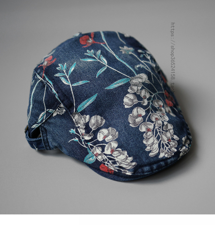 • 앞으로 모자 데님 인쇄 민족 데님 블루