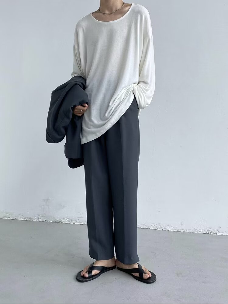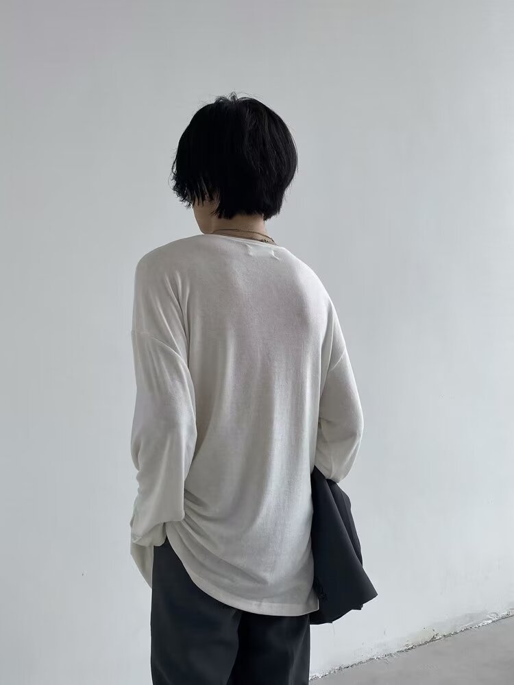 남성용 단색베이스 셔츠 커플 옷 봄과 여름 긴팔 티셔츠 일본식 탑 옷 내부 티셔츠 라운드 칼라스토어 가기