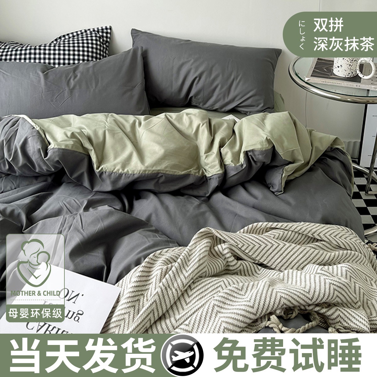 • Shuangpin-다크 그레이 Matcha [소프트 왁스 피부 친화적 인 실키 슬리핑 모성 및 유아 등급]]