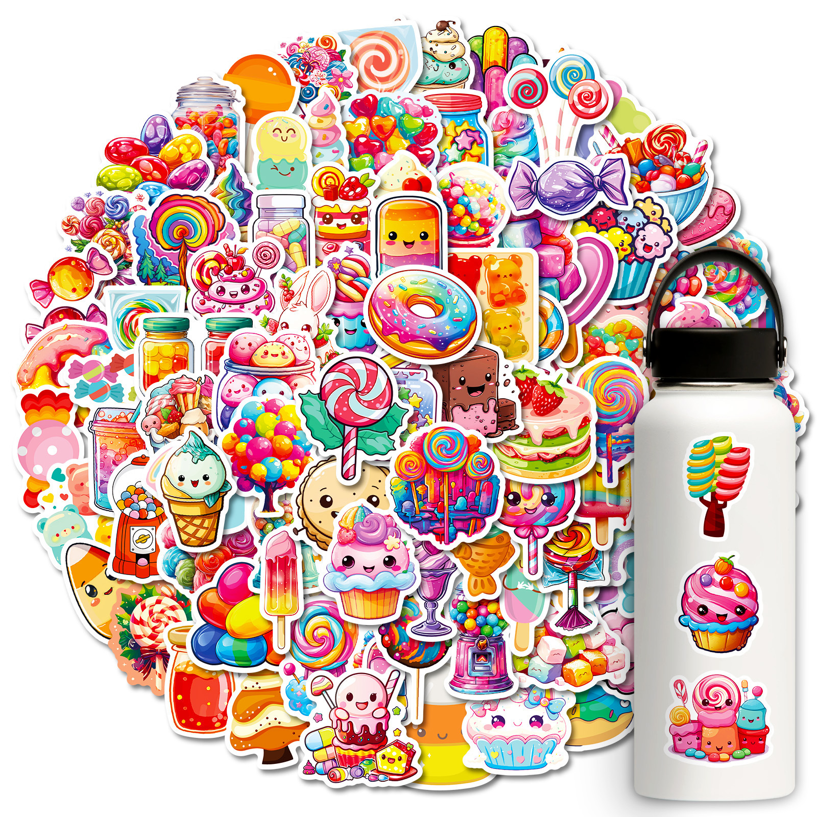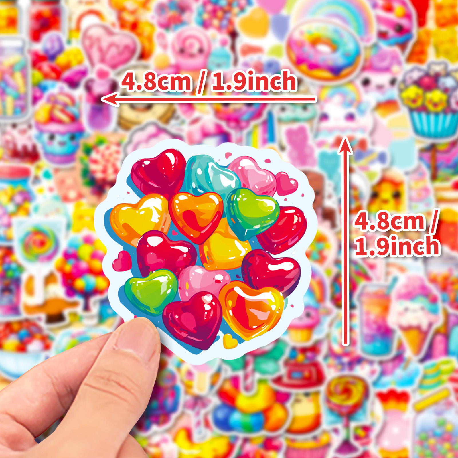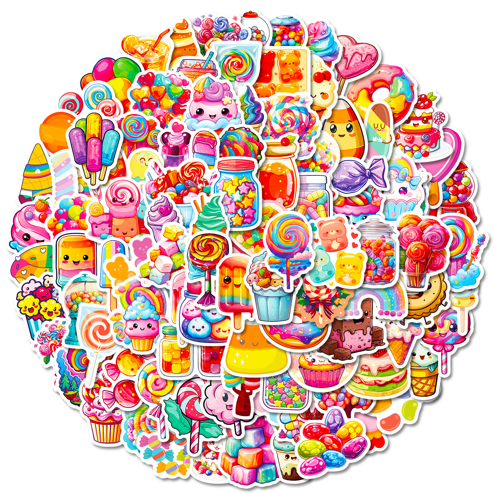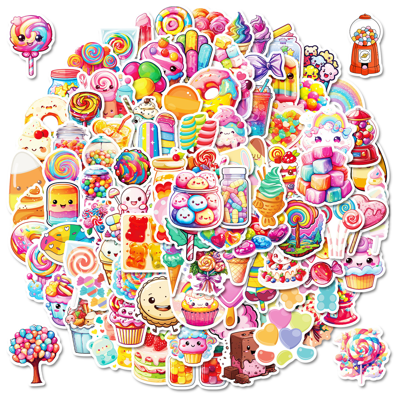 100 다채로운 사탕 만화 낙서 스티커 롤리팝 아이스크림 DIY 장식 손 계정 소녀 심장 스티커