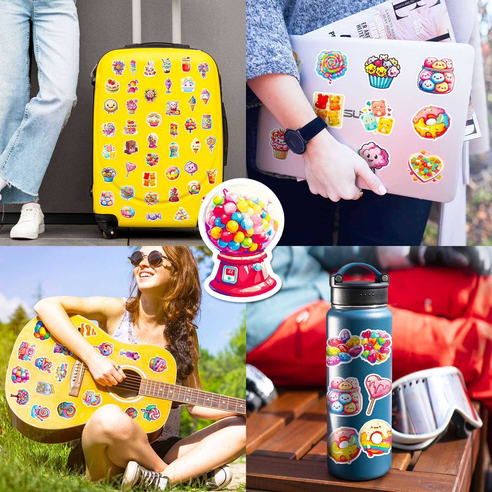 100 다채로운 사탕 만화 낙서 스티커 롤리팝 아이스크림 DIY 장식 손 계정 소녀 심장 스티커스토어 가기