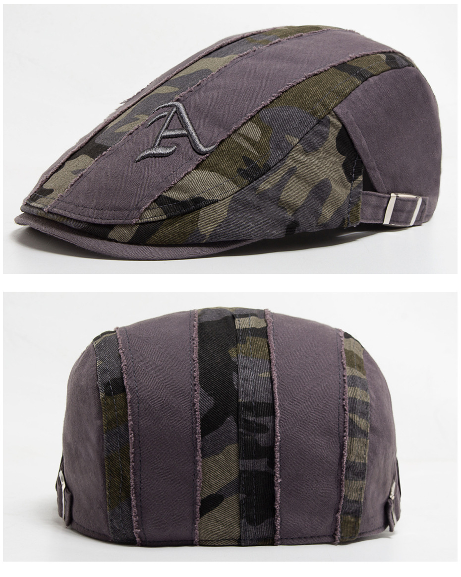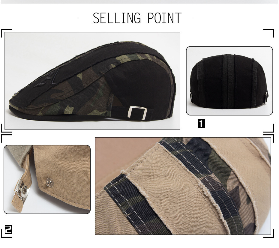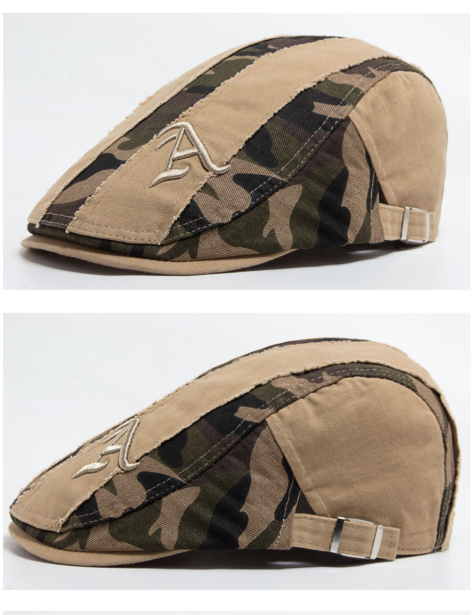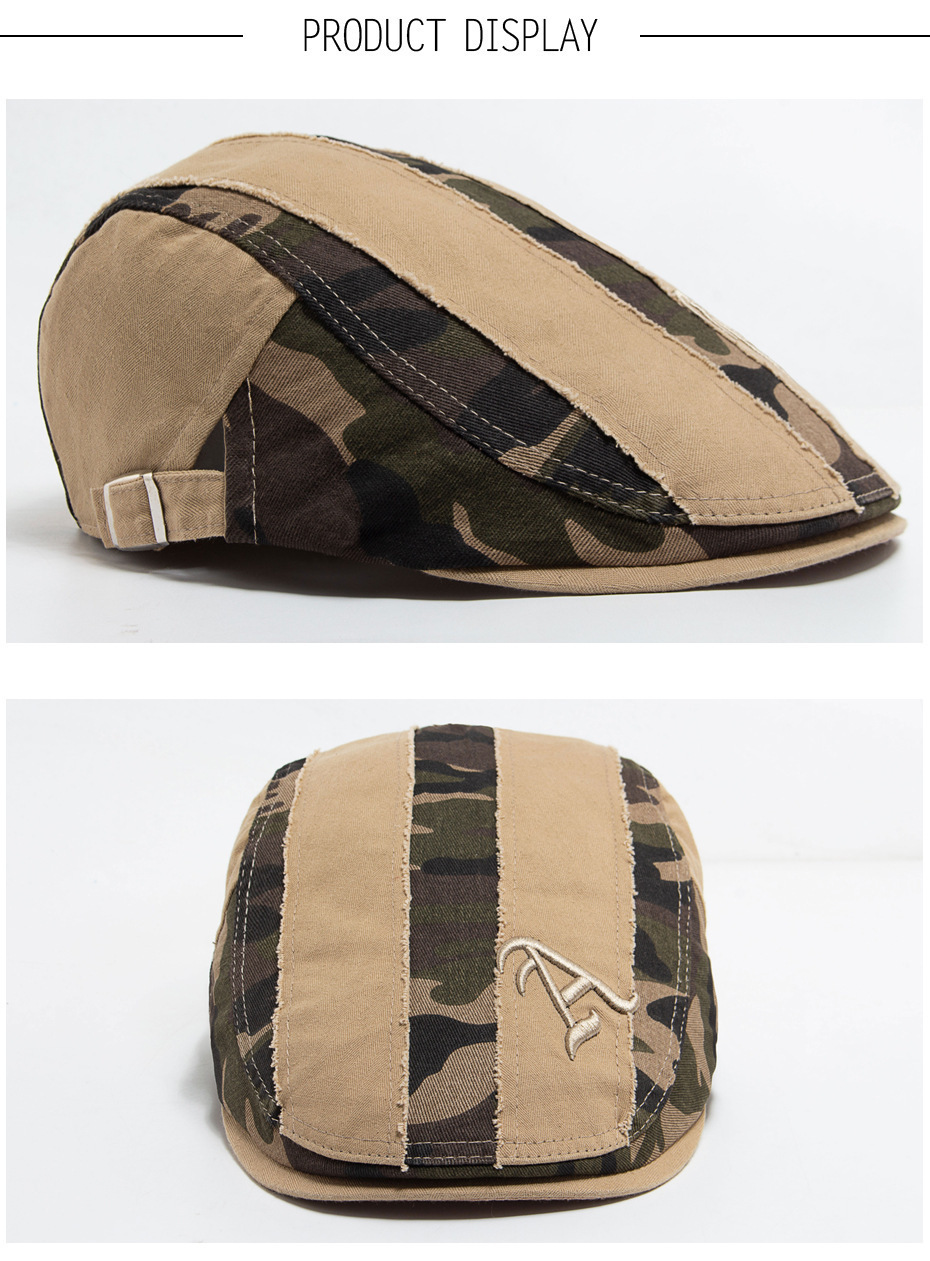 Yi Yi Beret 남성용 빈티지 위장 편지 햇빛 모자 면화 패션 야외 레저 앞으로스토어 가기