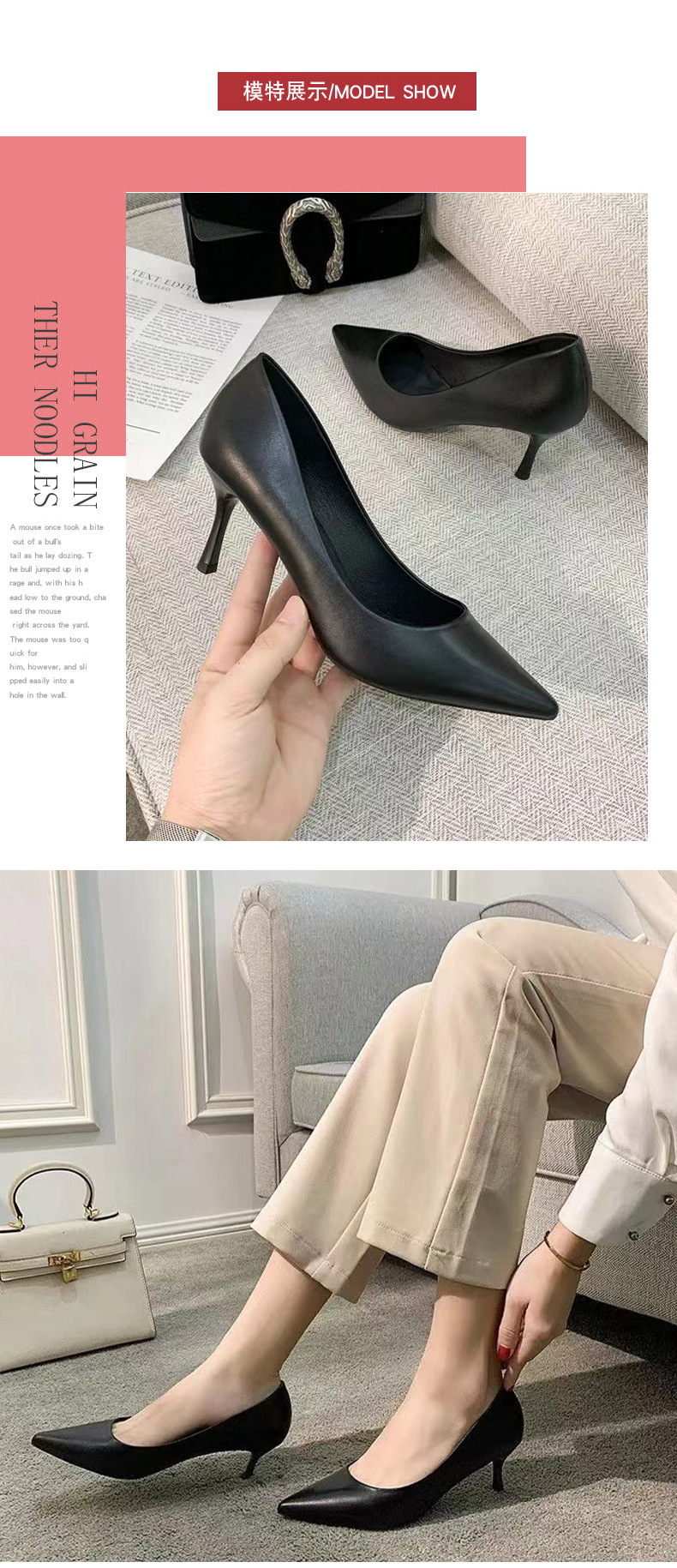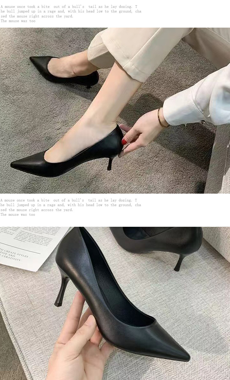 여성용 하이힐, 스틸레토 힐, 장시간 서 있어도 피곤하지 않음, 다용도, 2025 봄 가을 소프트솔 전문가용 블랙 여성용 작업화, 뾰족한 앞코