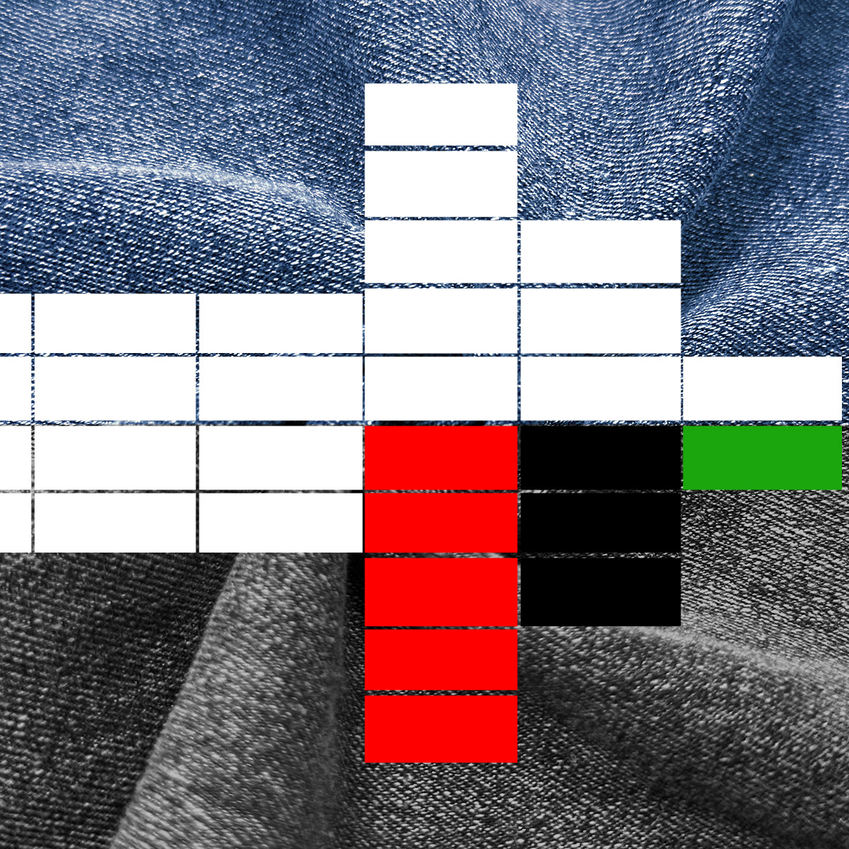 • 블랙 데님 + 빨간색과 파란색 배색 + 두꺼운 줄무늬, 단가 + 3 위안