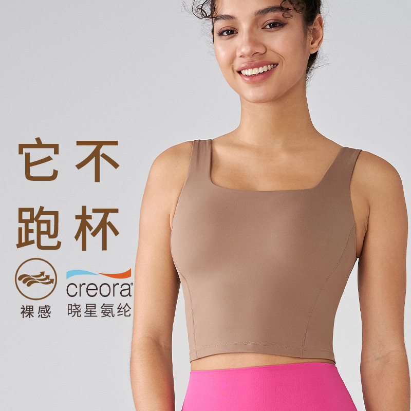 벌거 벗은 원피스 고정 컵 충격 방지 요가 의류 여성 민소매 짧은 스포츠 속옷 와이드 숄더 슬링 요가 조끼