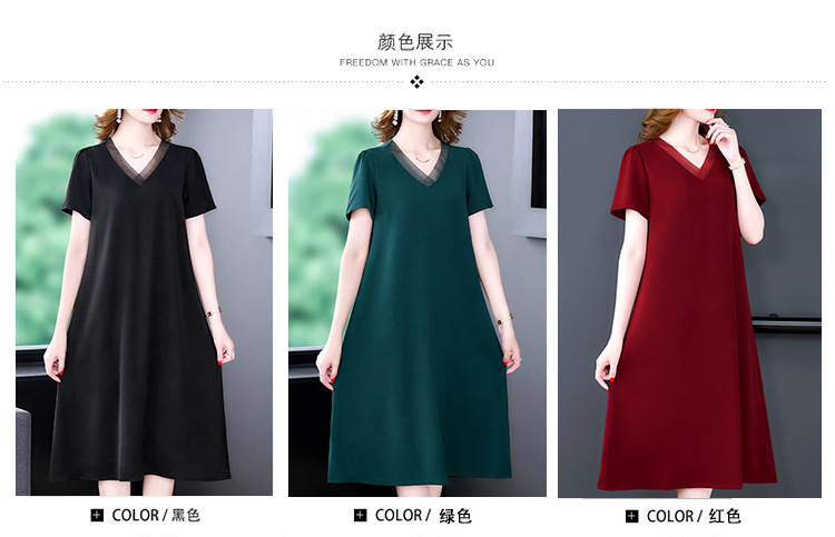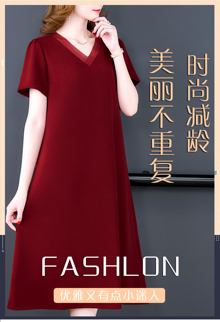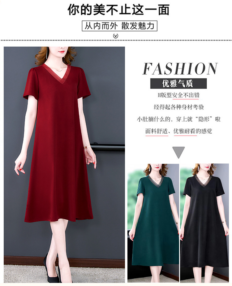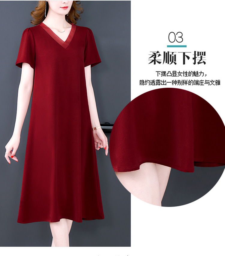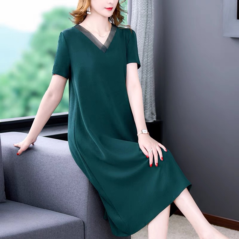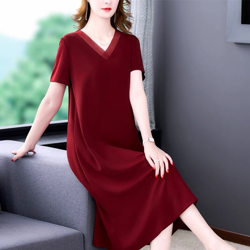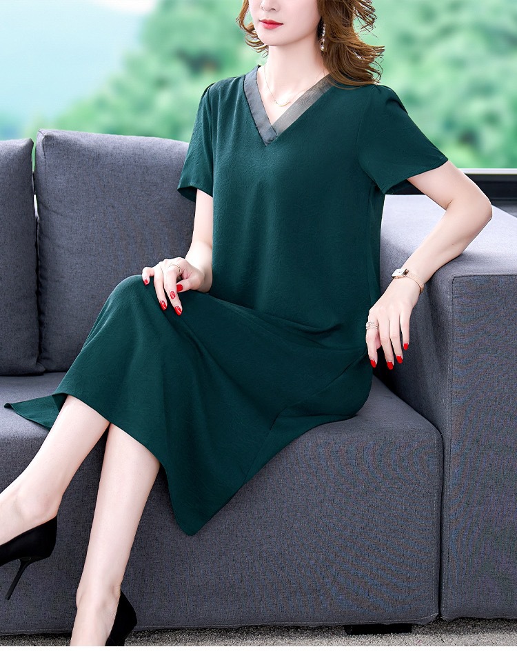 어머니의 원피스 V-Neck 2024 여성용 우아한 슬리밍 서양식 중간 길이의 여름 단색 원피스 원피스 느슨한 배꼽