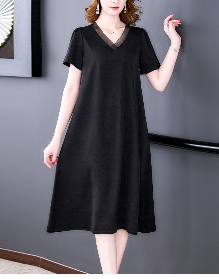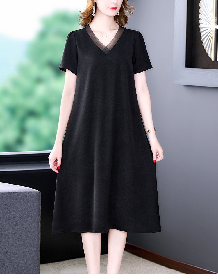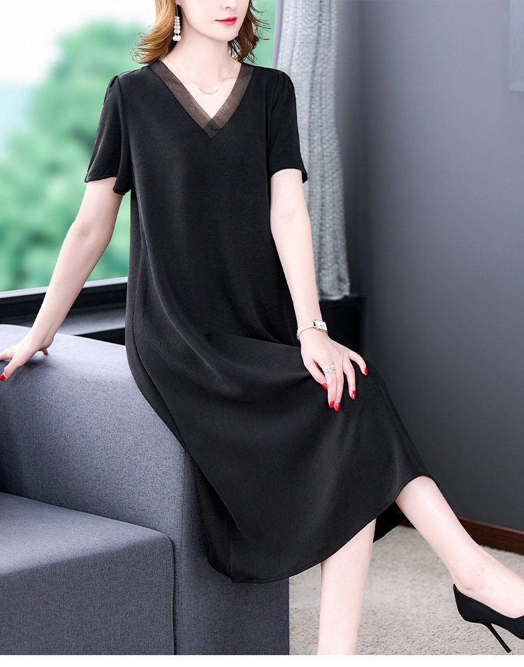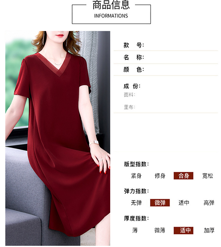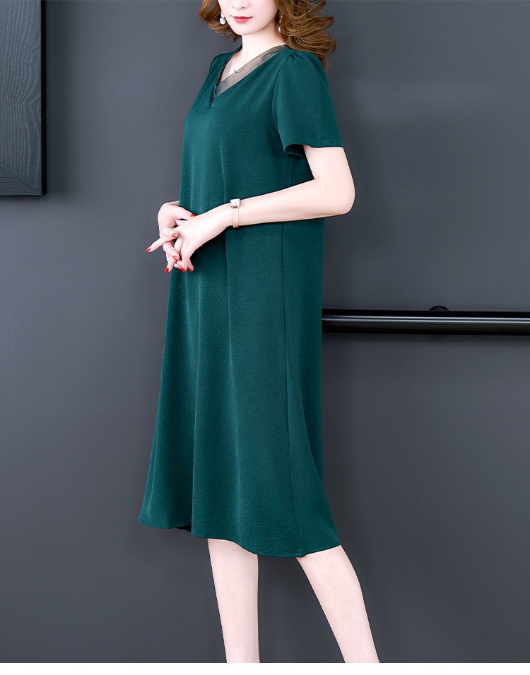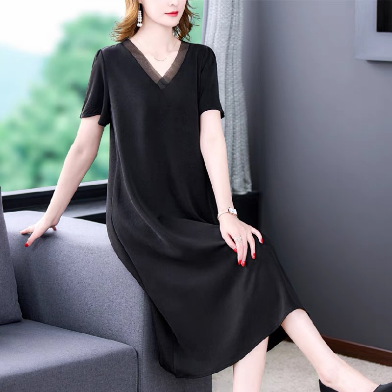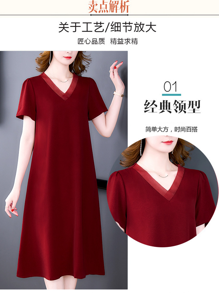 어머니의 원피스 V-Neck 2024 여성용 우아한 슬리밍 서양식 중간 길이의 여름 단색 원피스 원피스 느슨한 배꼽