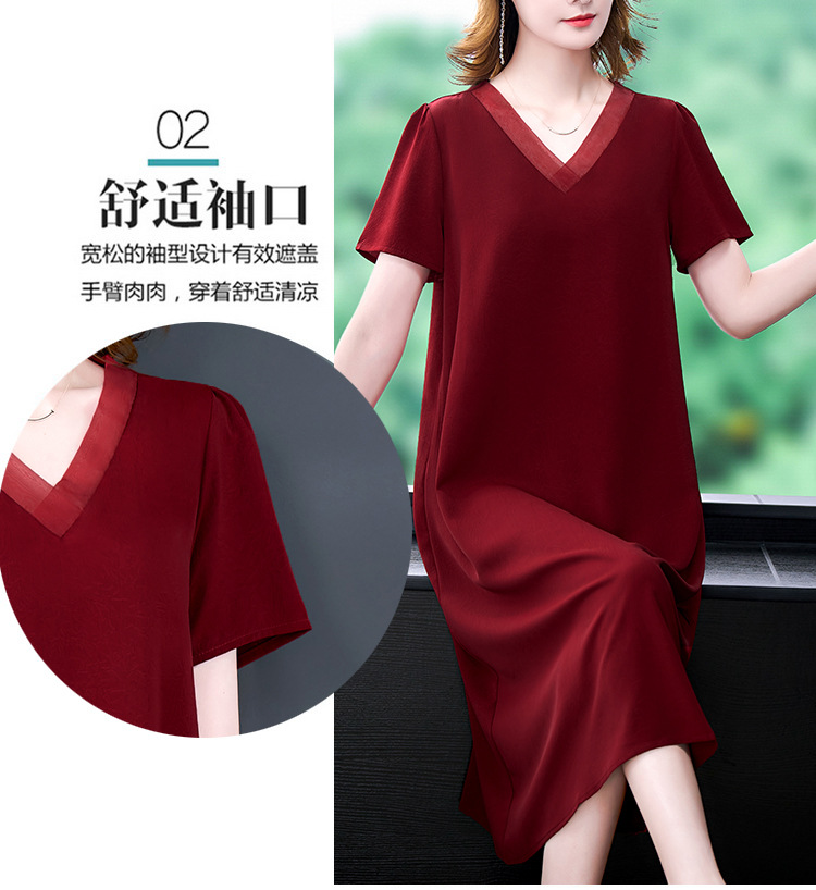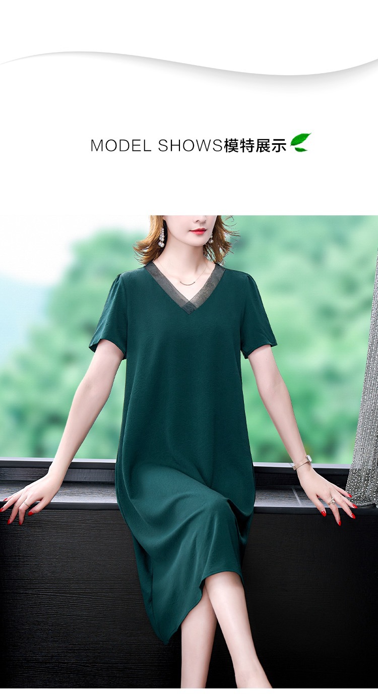 어머니의 원피스 V-Neck 2024 여성용 우아한 슬리밍 서양식 중간 길이의 여름 단색 원피스 원피스 느슨한 배꼽스토어 가기