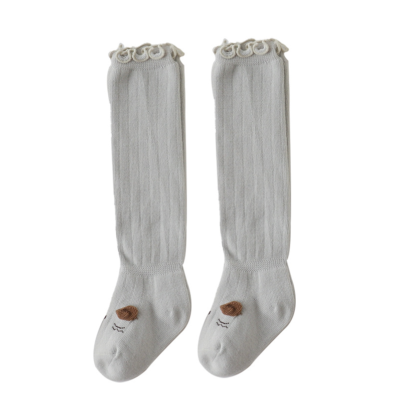 宝宝袜跨境立体小熊棉袜儿童防滑地板袜DIY中筒袜春秋松口袜复古