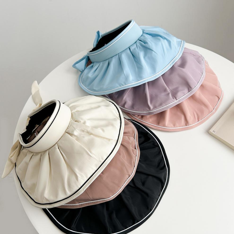 Yi Yi 새로운 여름 여성의 선 스크린 연꽃 주름진 넓은 차양 모자 야외 UV 보호 간단한 패션 빈스토어 가기