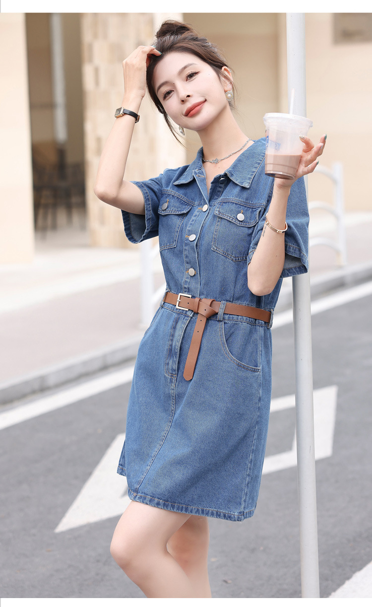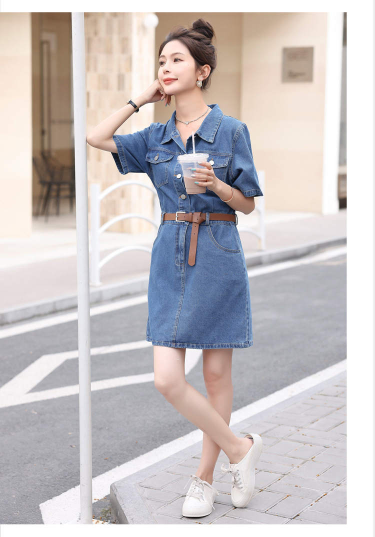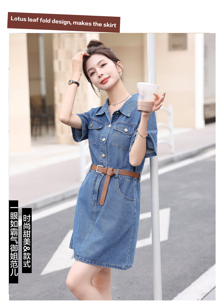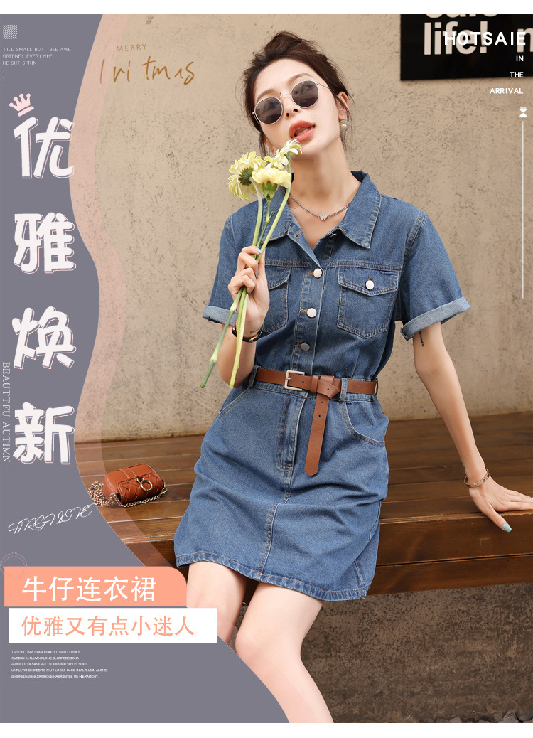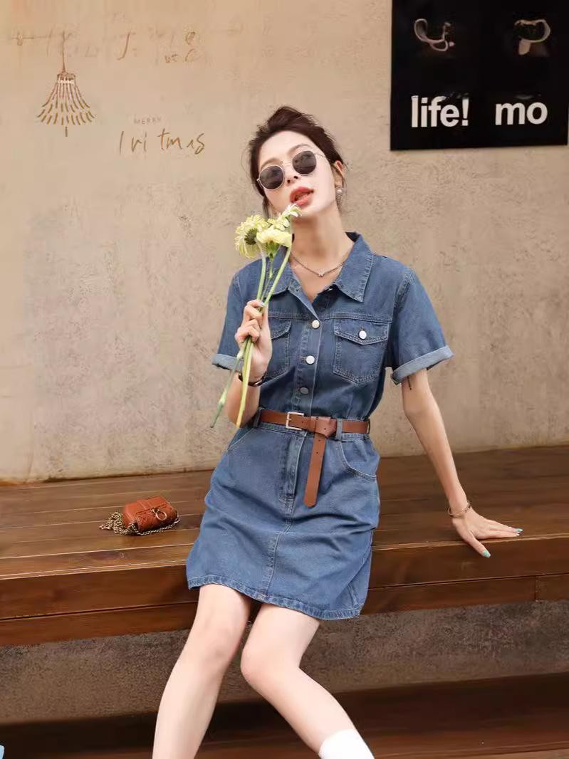캐주얼 높은 허리 짧은 데님 스커트 2024 여름 새로운 꽉 허리 슬리밍 달콤한 쿨 패션 올 매치 데님 원피스