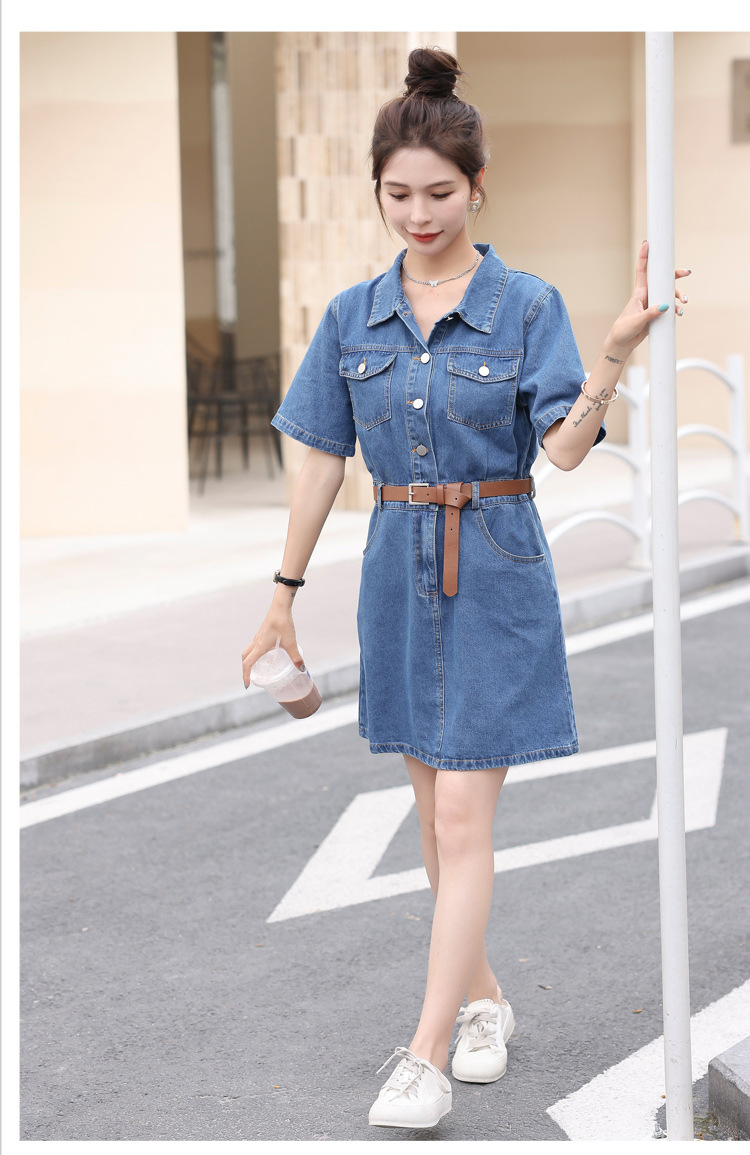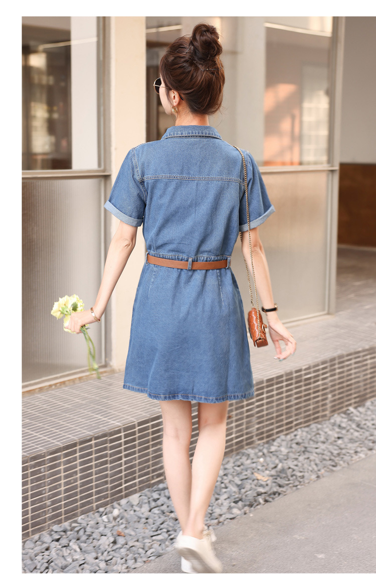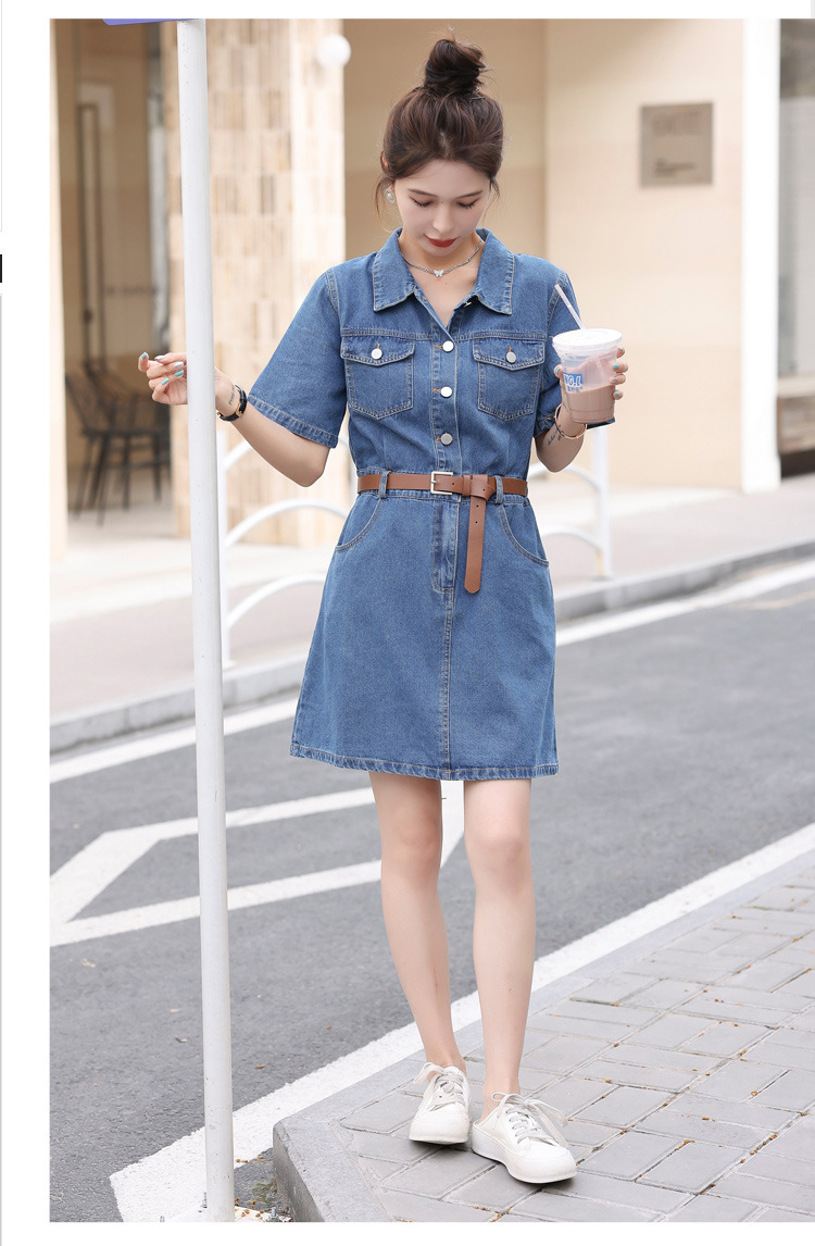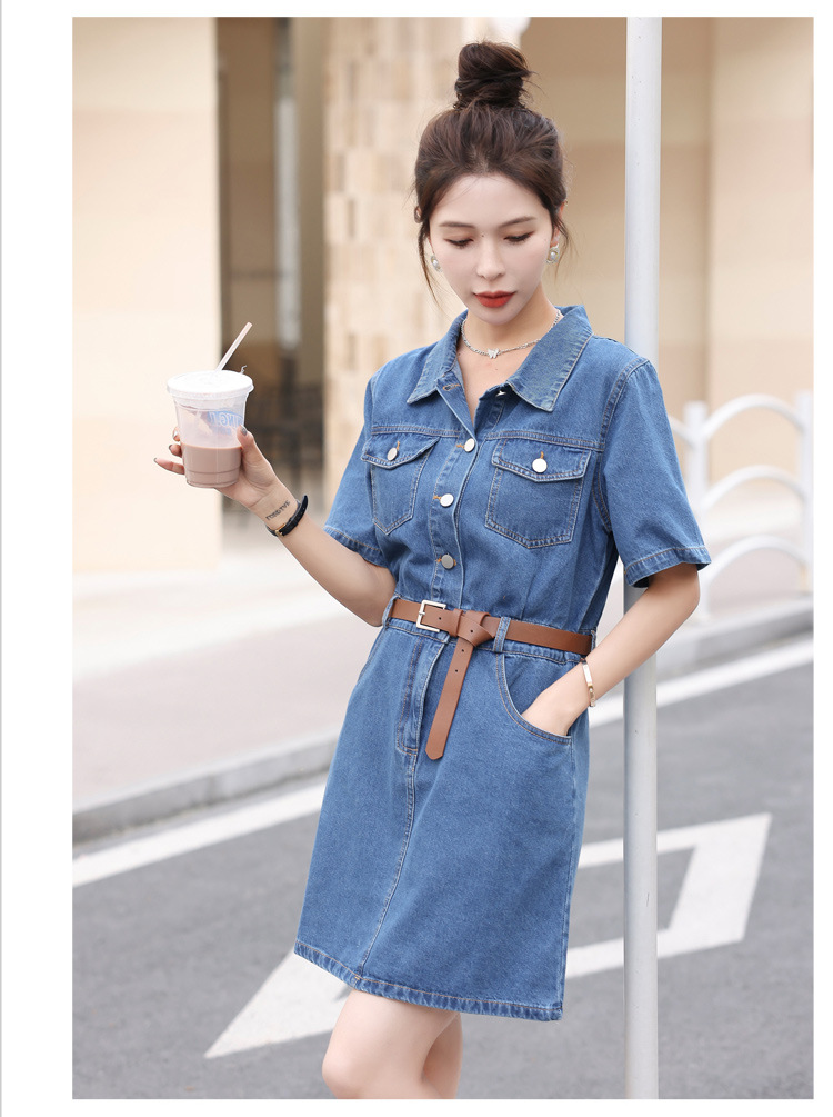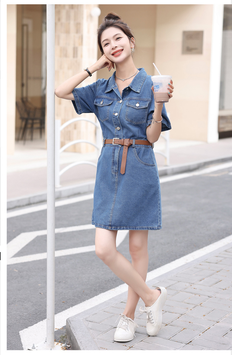 캐주얼 높은 허리 짧은 데님 스커트 2024 여름 새로운 꽉 허리 슬리밍 달콤한 쿨 패션 올 매치 데님 원피스