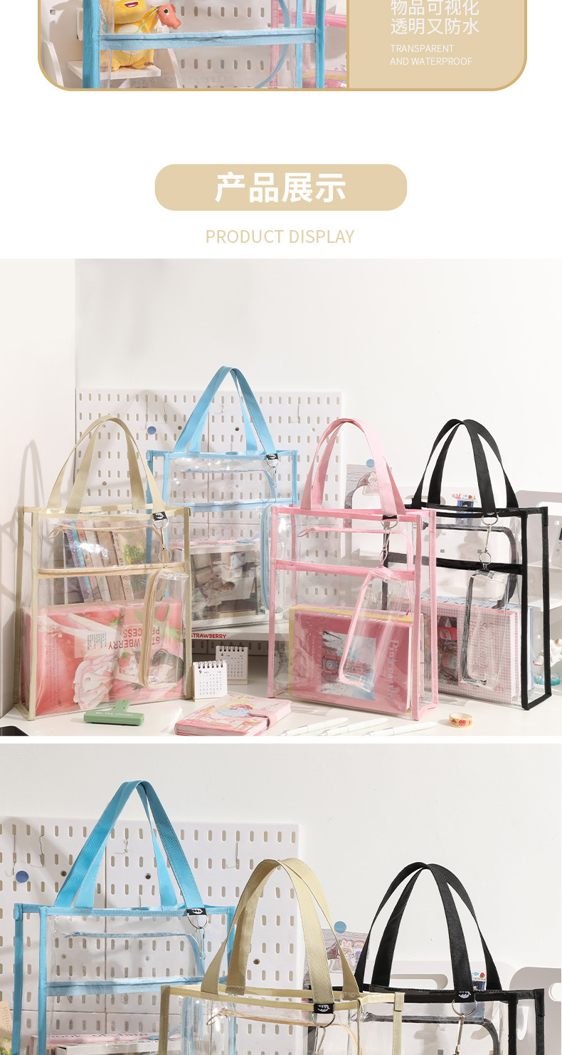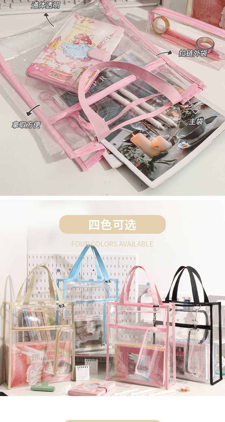간단한 대용량 투명 핸드백 중학교 및 고등학교 시험 방수 A4 파일 가방스토어 가기