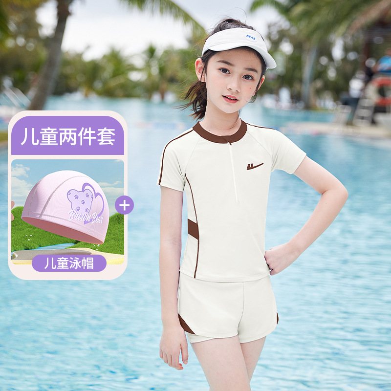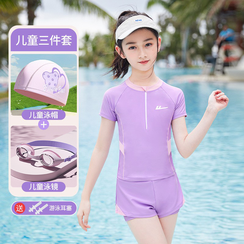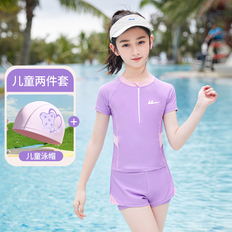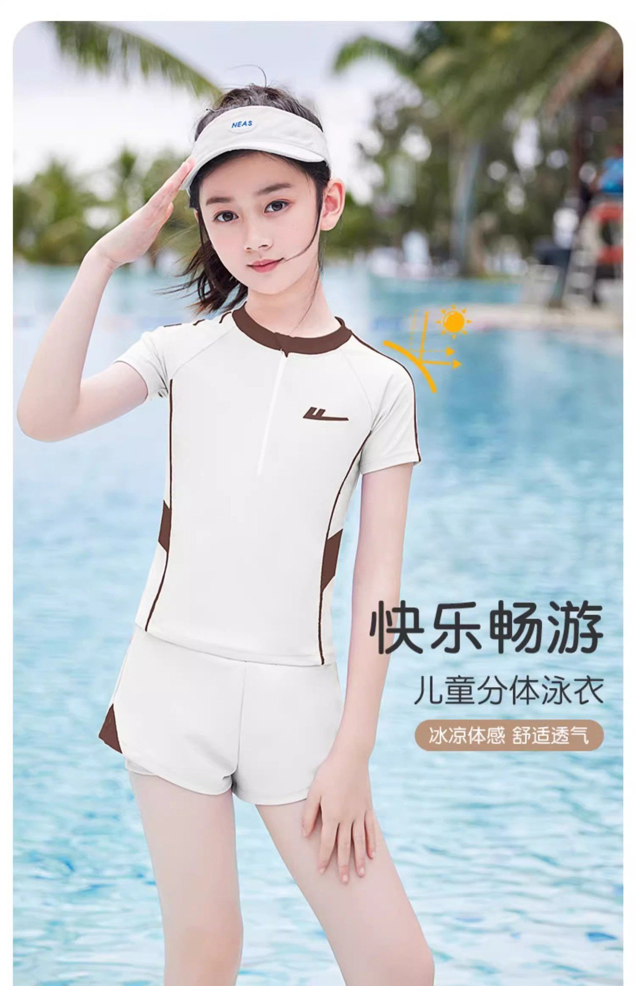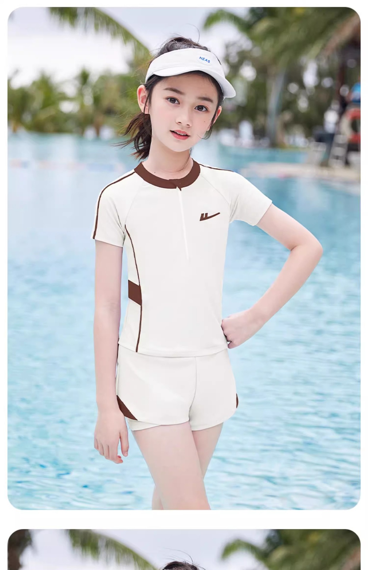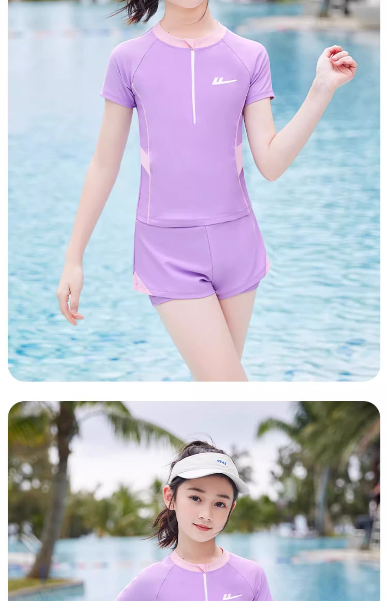 Huili 어린이 수영복 소녀 2024 새로운 스타일 보수 분할 빅 키즈 전문 훈련 여자 수영복