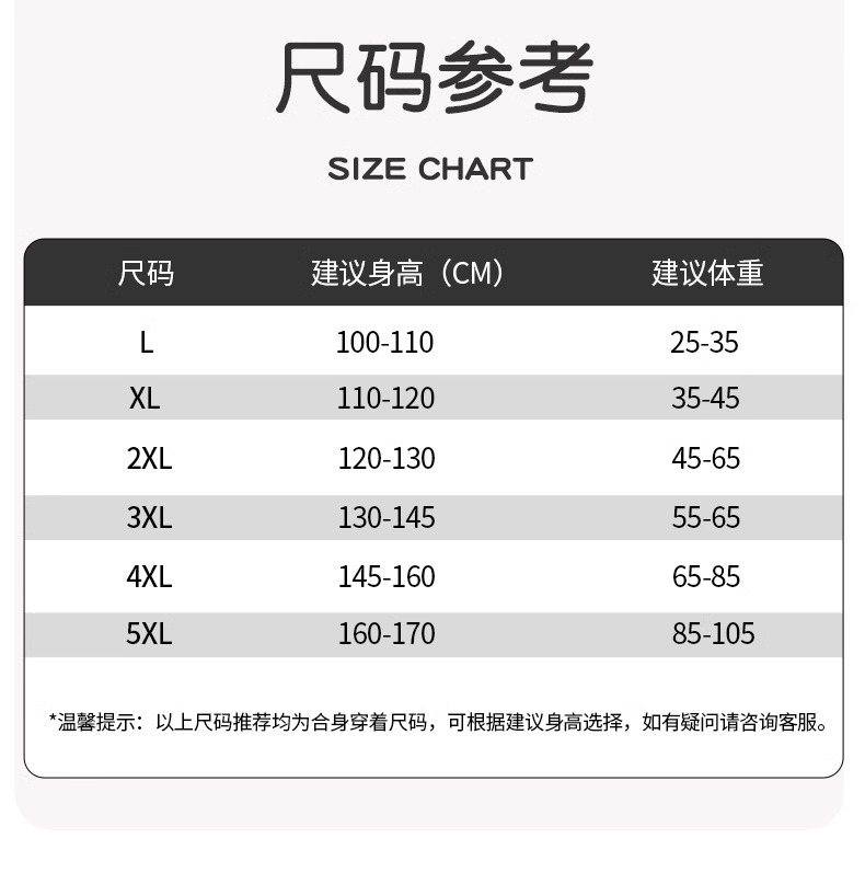• 3XL (권장 키 130-145cm, 몸무게 27.5-32.5kg )