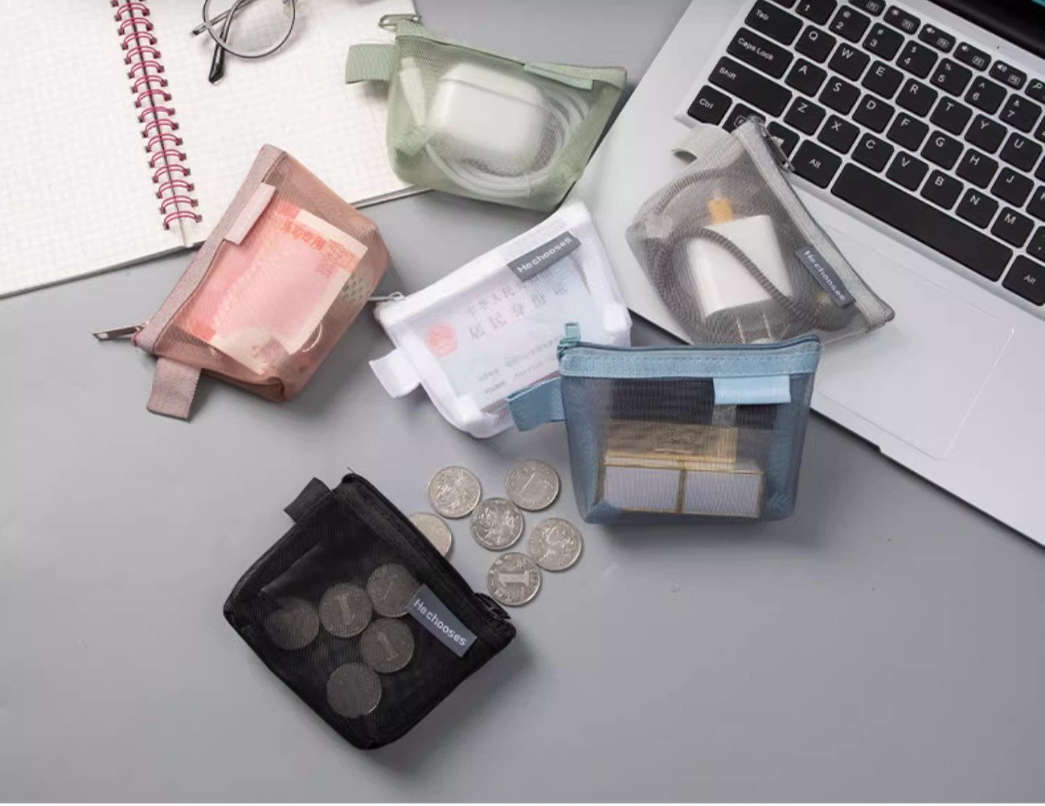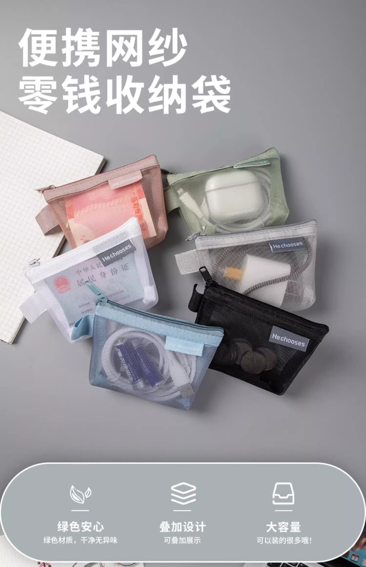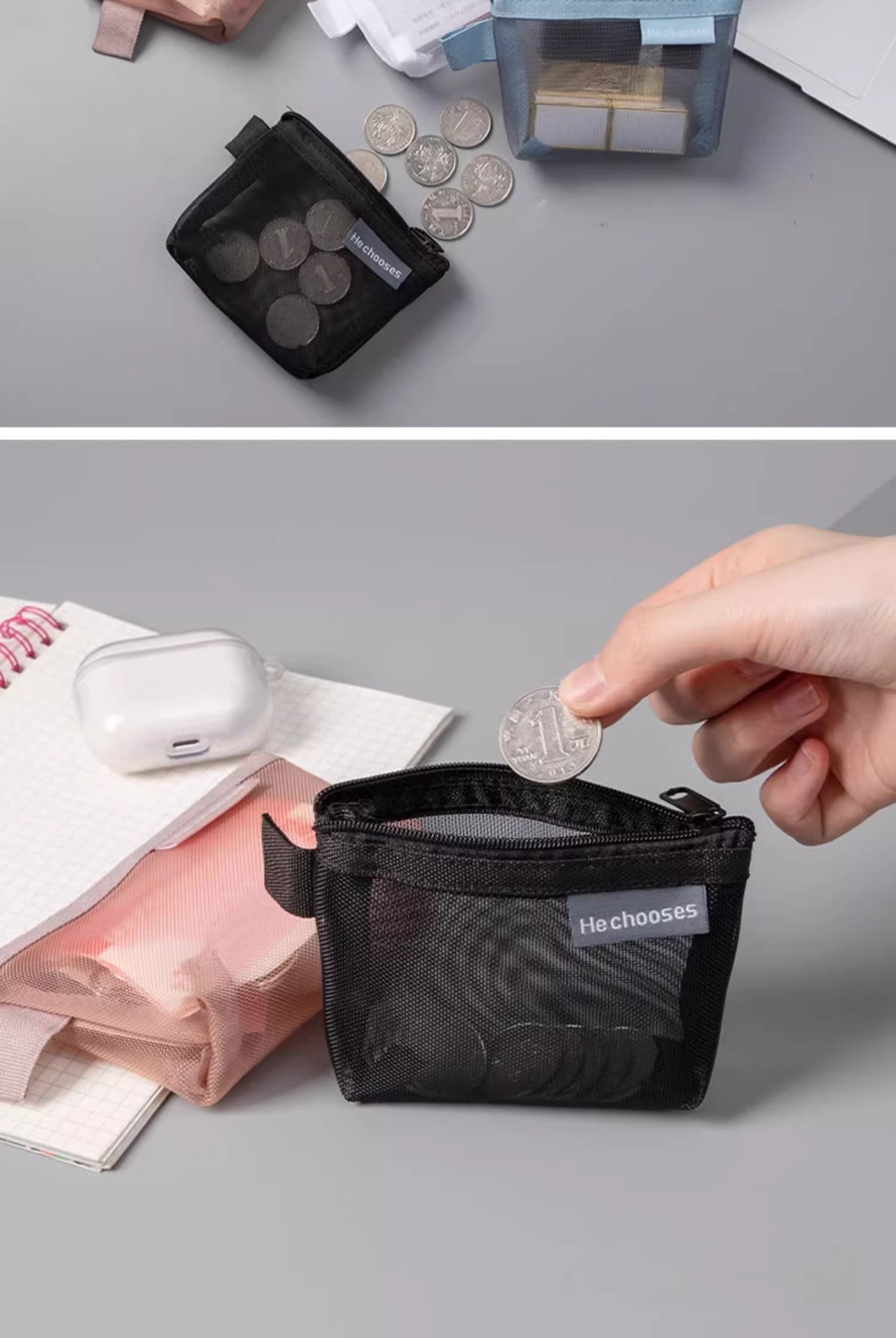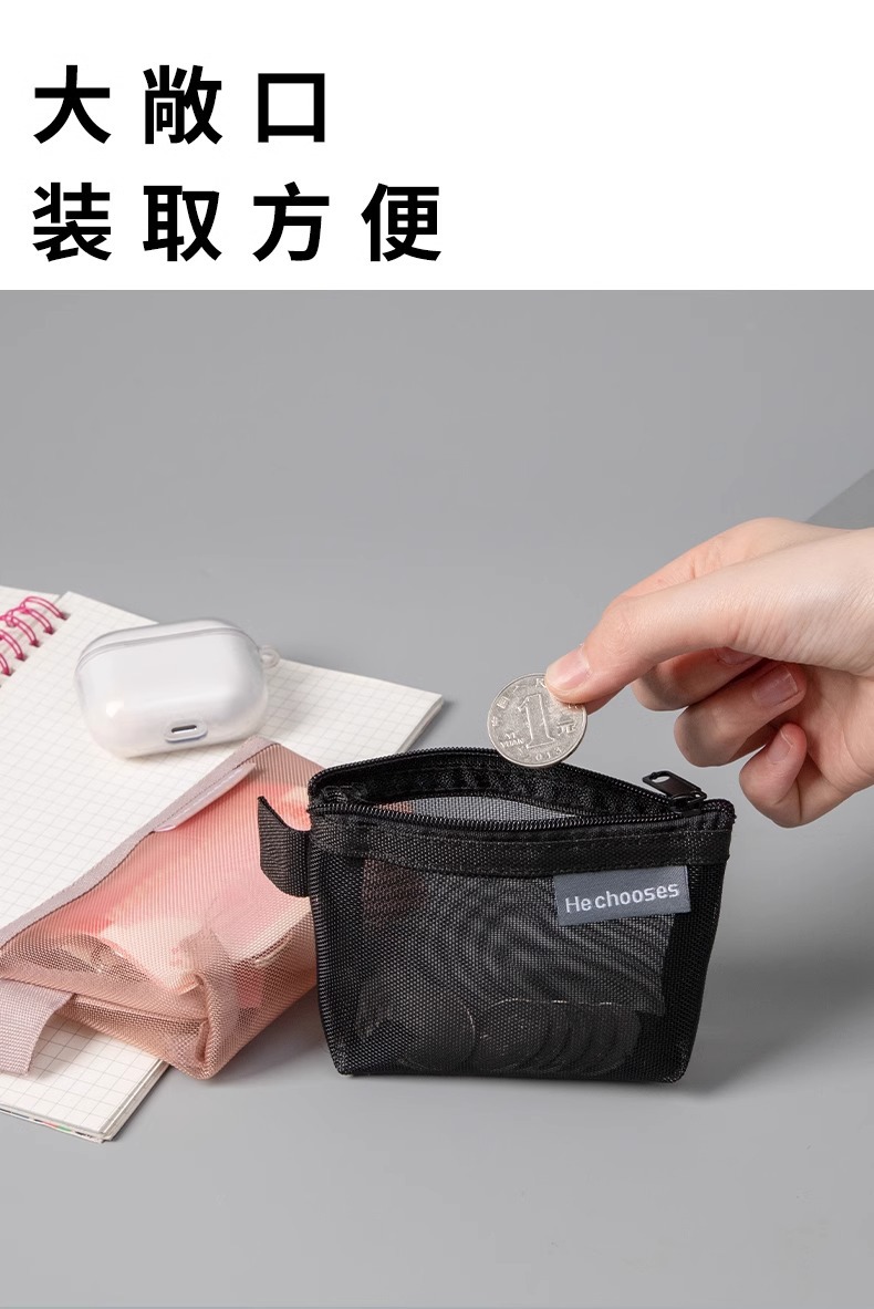 미니 메쉬 저장 가방 휴대용 동전 지갑 학생 간단한 지퍼 립스틱 은행 카드 가방 ID 카드 키 가방