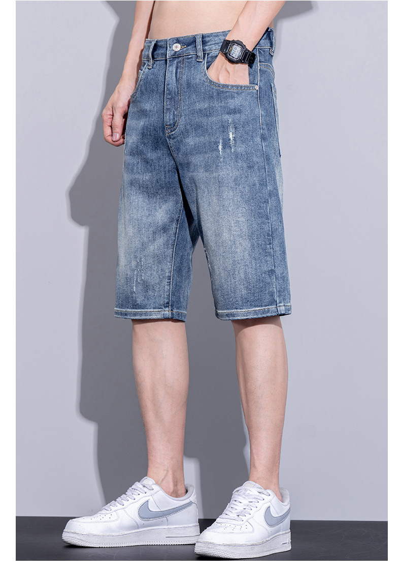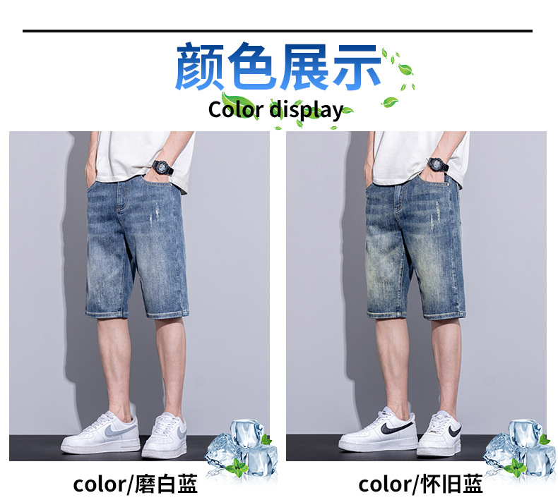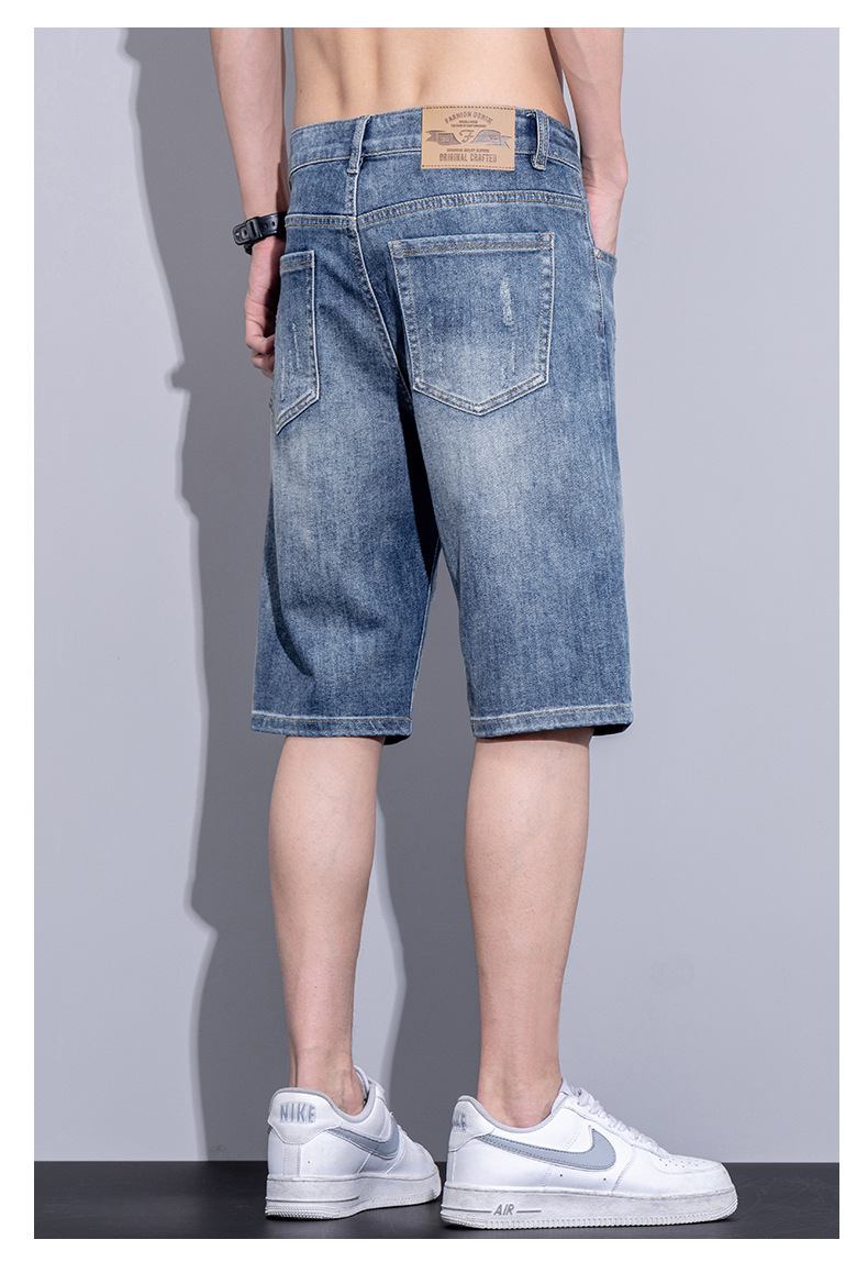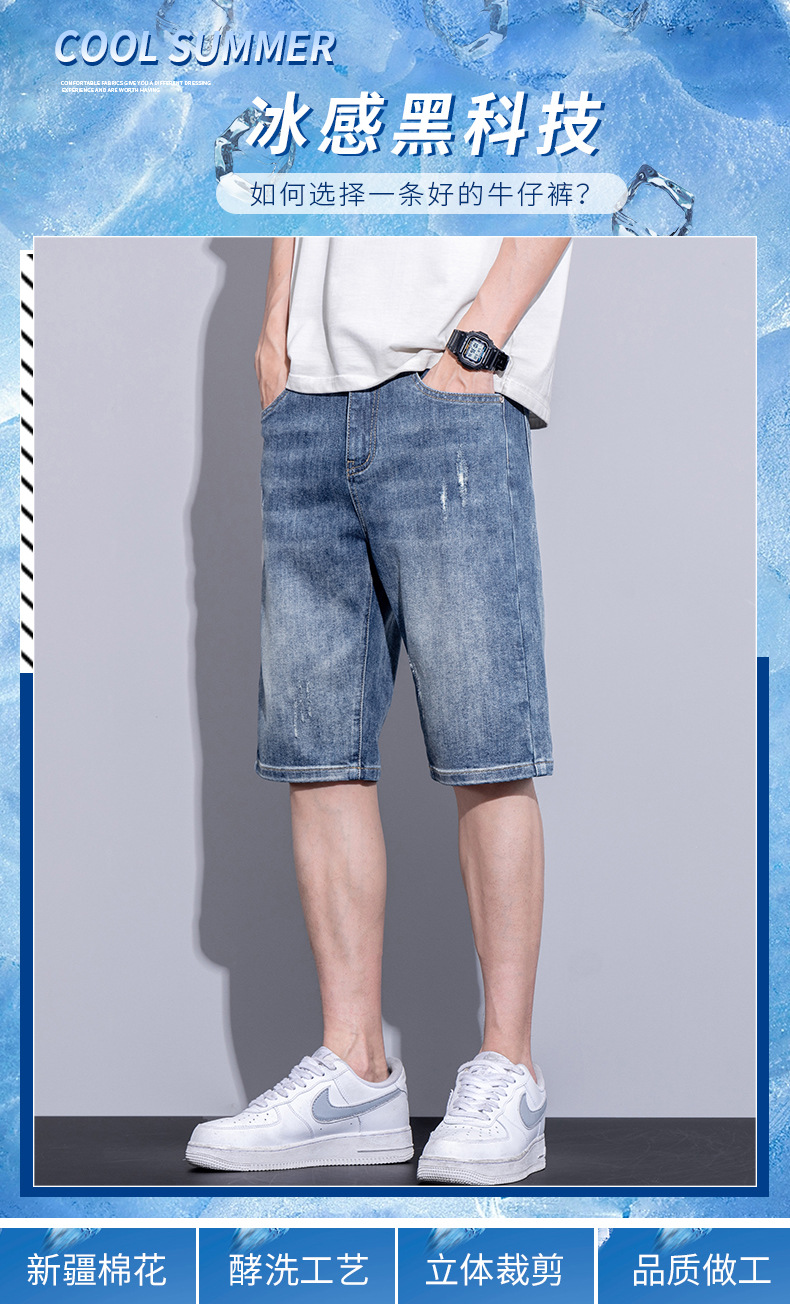 남자 데님 반바지 여름 얇은 캐주얼 느슨한 유행 브랜드 스트레이트 바지 남자 여름 올매치 5 점 바지스토어 가기