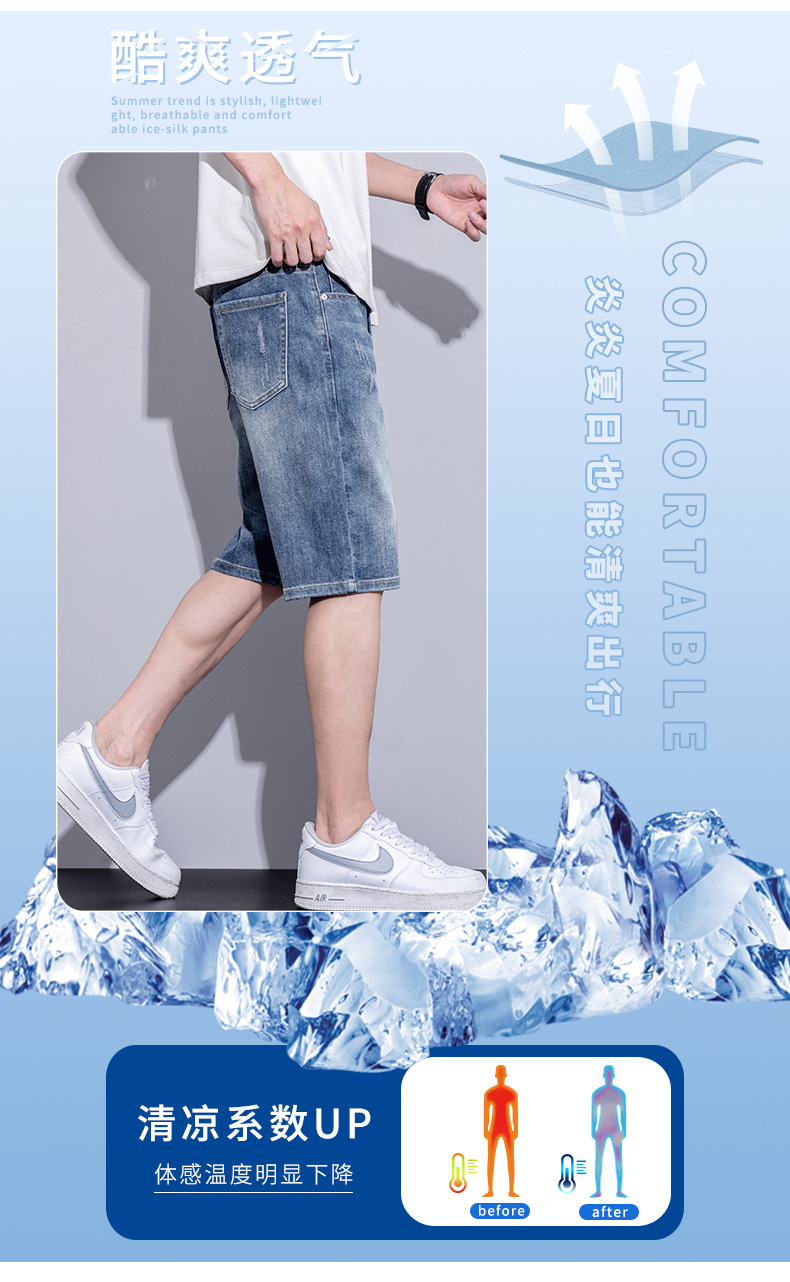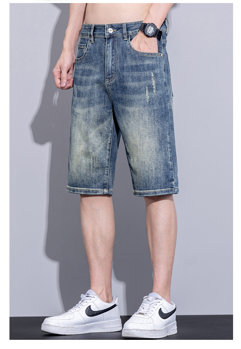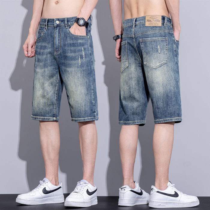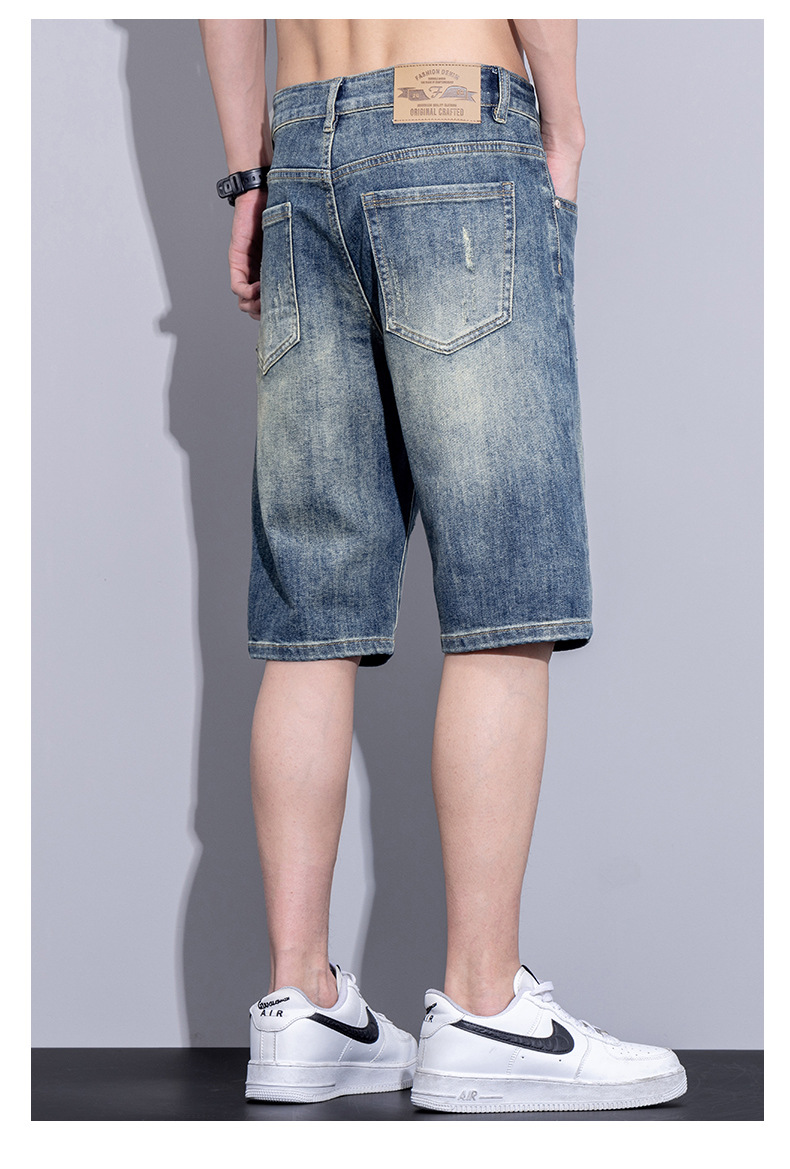 남자 데님 반바지 여름 얇은 캐주얼 느슨한 유행 브랜드 스트레이트 바지 남자 여름 올매치 5 점 바지스토어 가기
