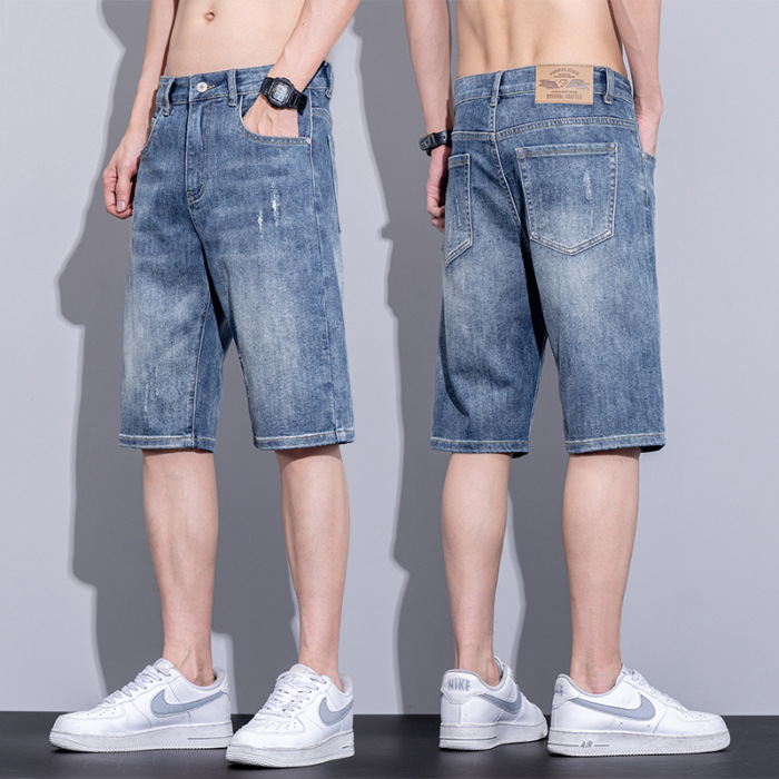 남자 데님 반바지 여름 얇은 캐주얼 느슨한 유행 브랜드 스트레이트 바지 남자 여름 올매치 5 점 바지